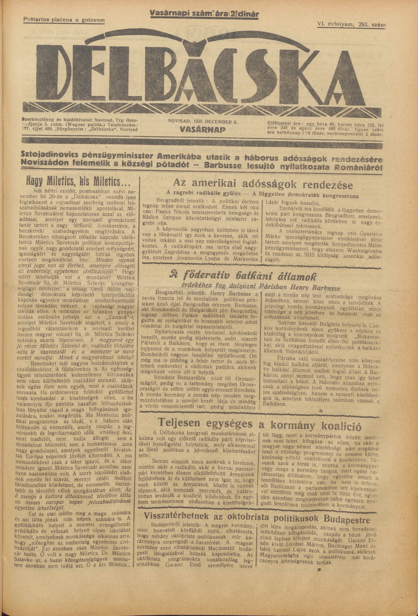 Délbácska, 6. évf. 1925. december 6. 283. sz.