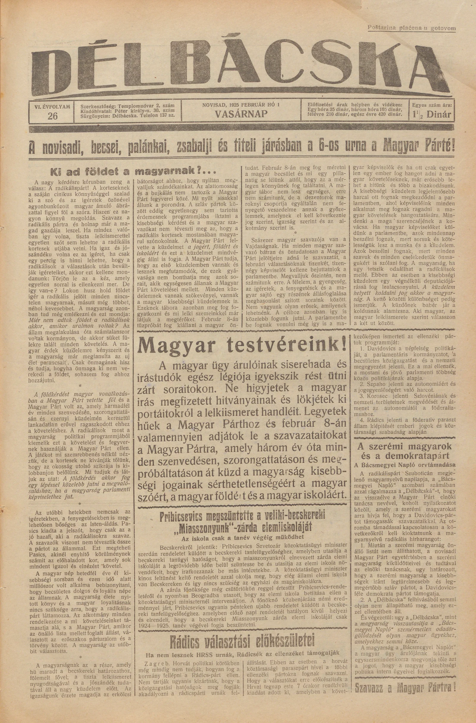 Délbácska, 6. évf. 1925. február 1. 26. sz.