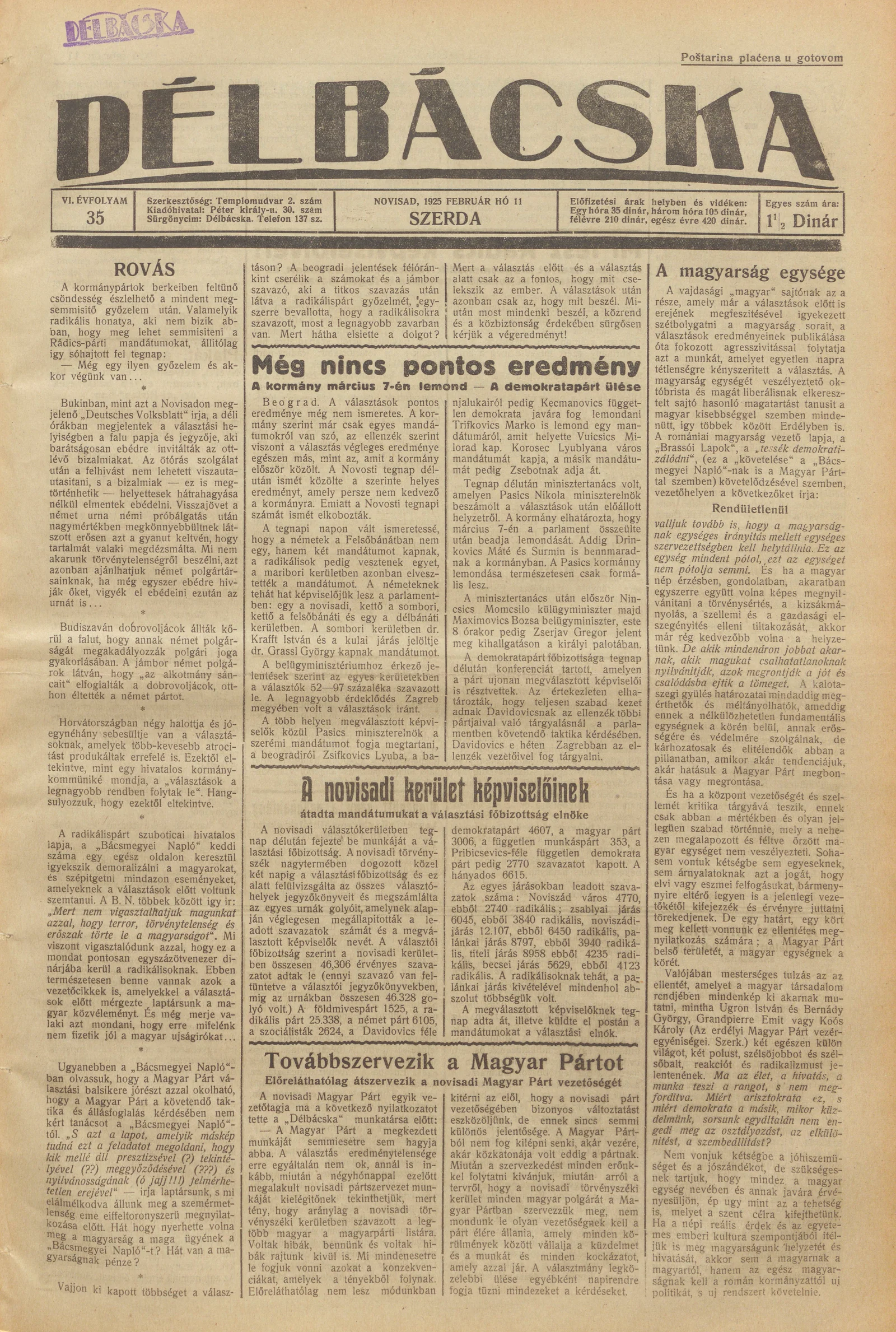 Délbácska, 6. évf. 1925. február 11. 35. sz.