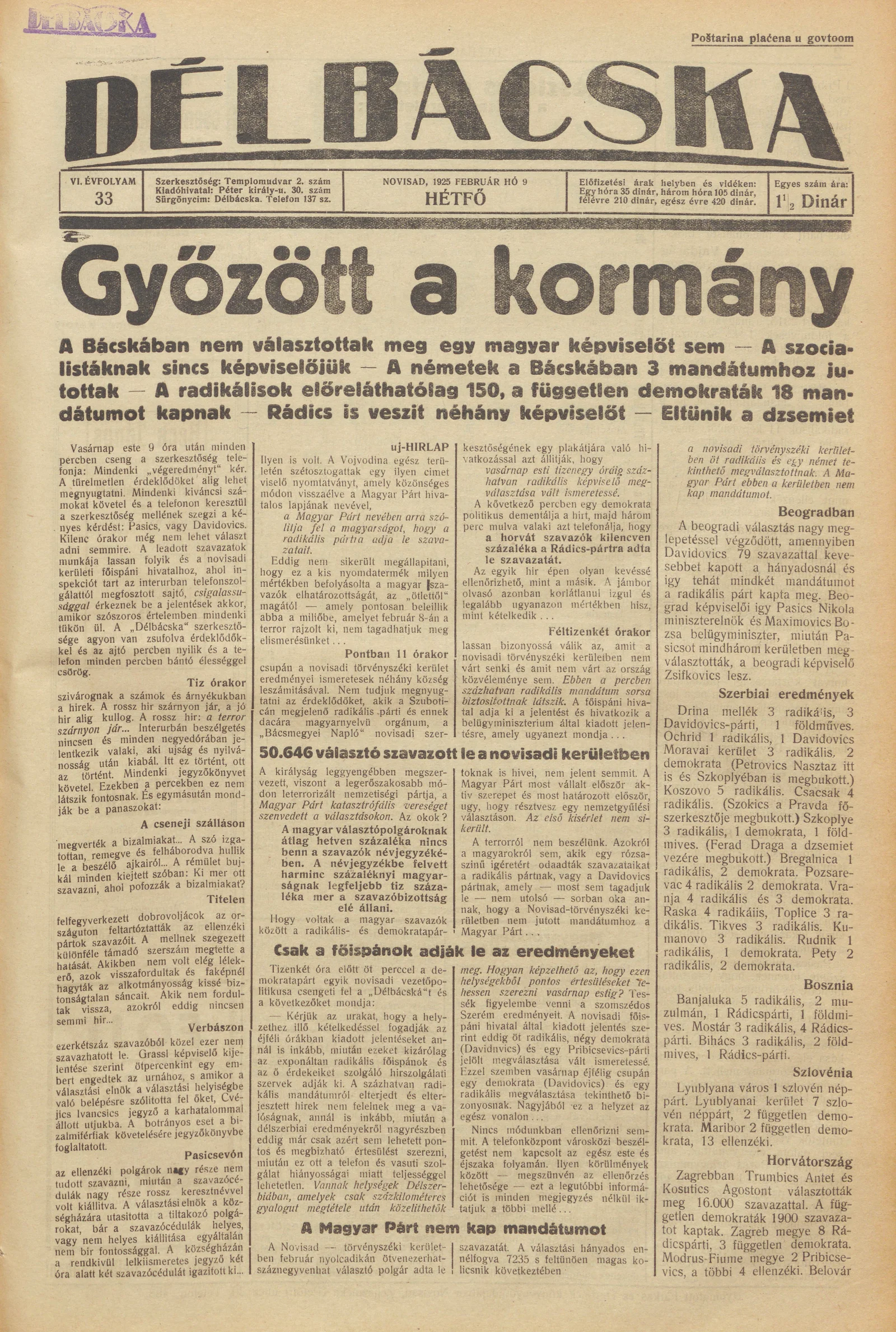 Délbácska, 6. évf. 1925. február 9. 33. sz.