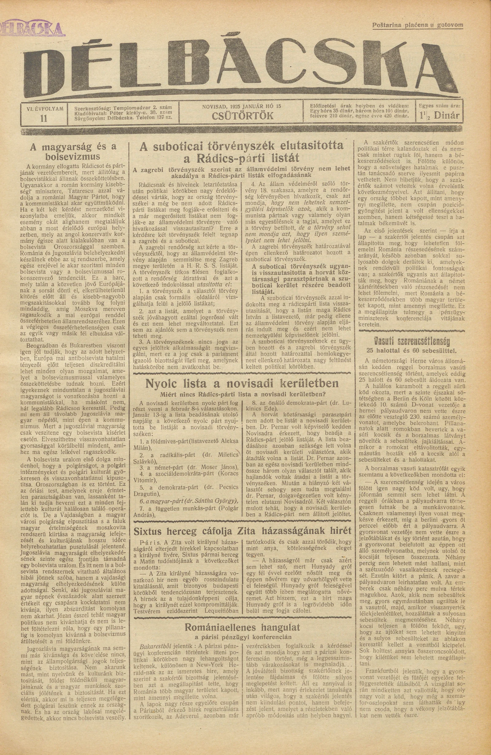 Délbácska, 6. évf. 1925. január 15. 11. sz.