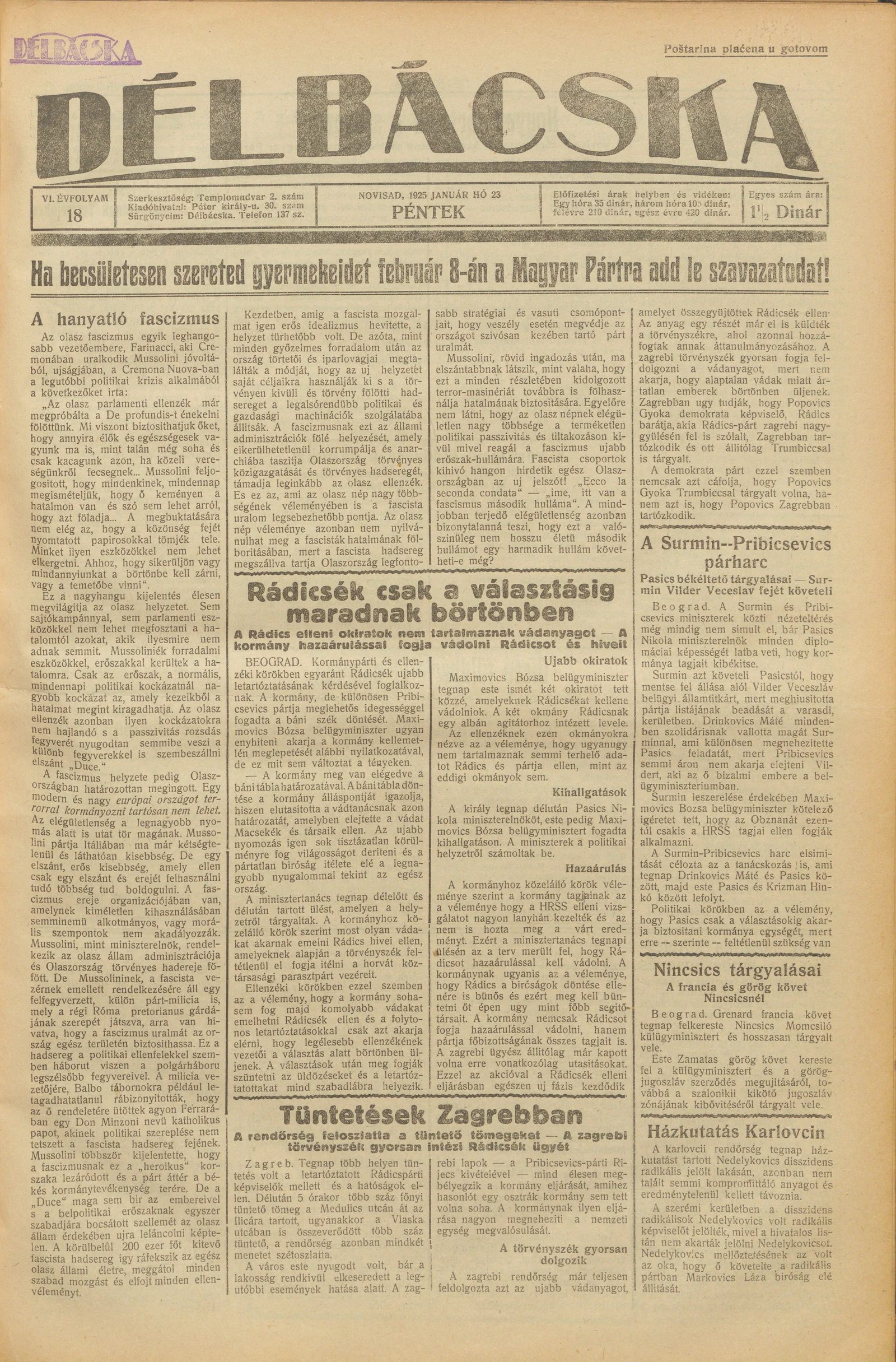 Délbácska, 6. évf. 1925. január 23. 18. sz.