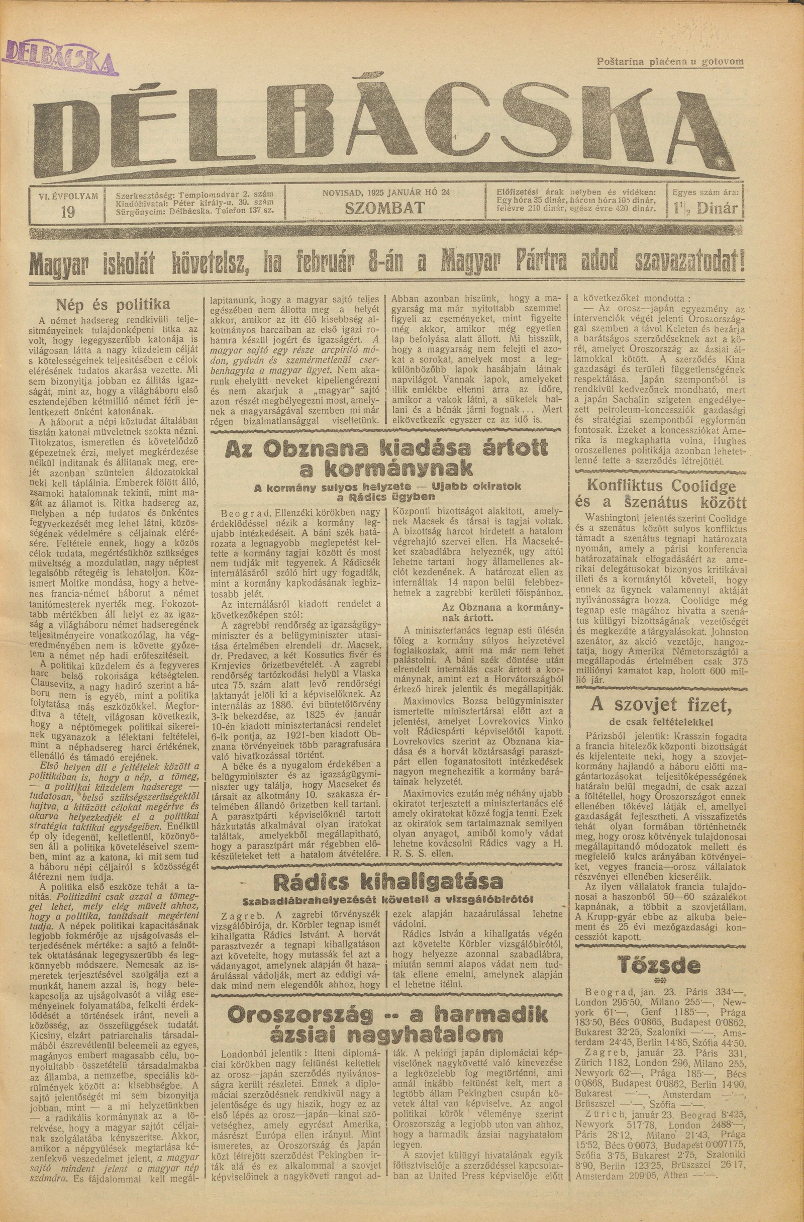 Délbácska, 6. évf. 1925. január 24. 19. sz.
