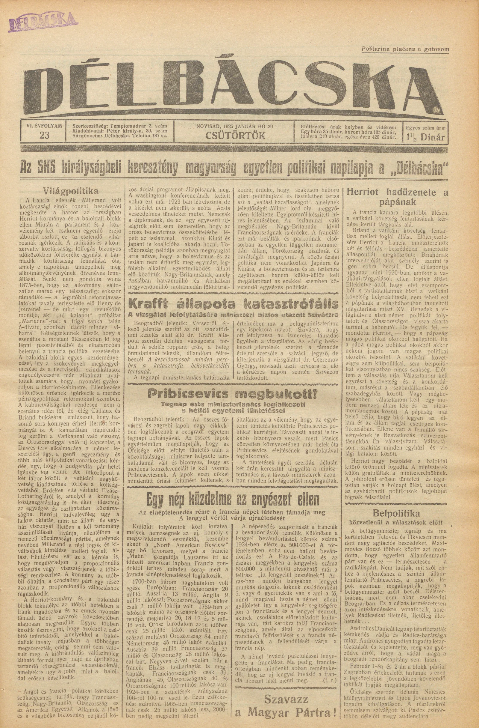 Délbácska, 6. évf. 1925. január 29. 23. sz.