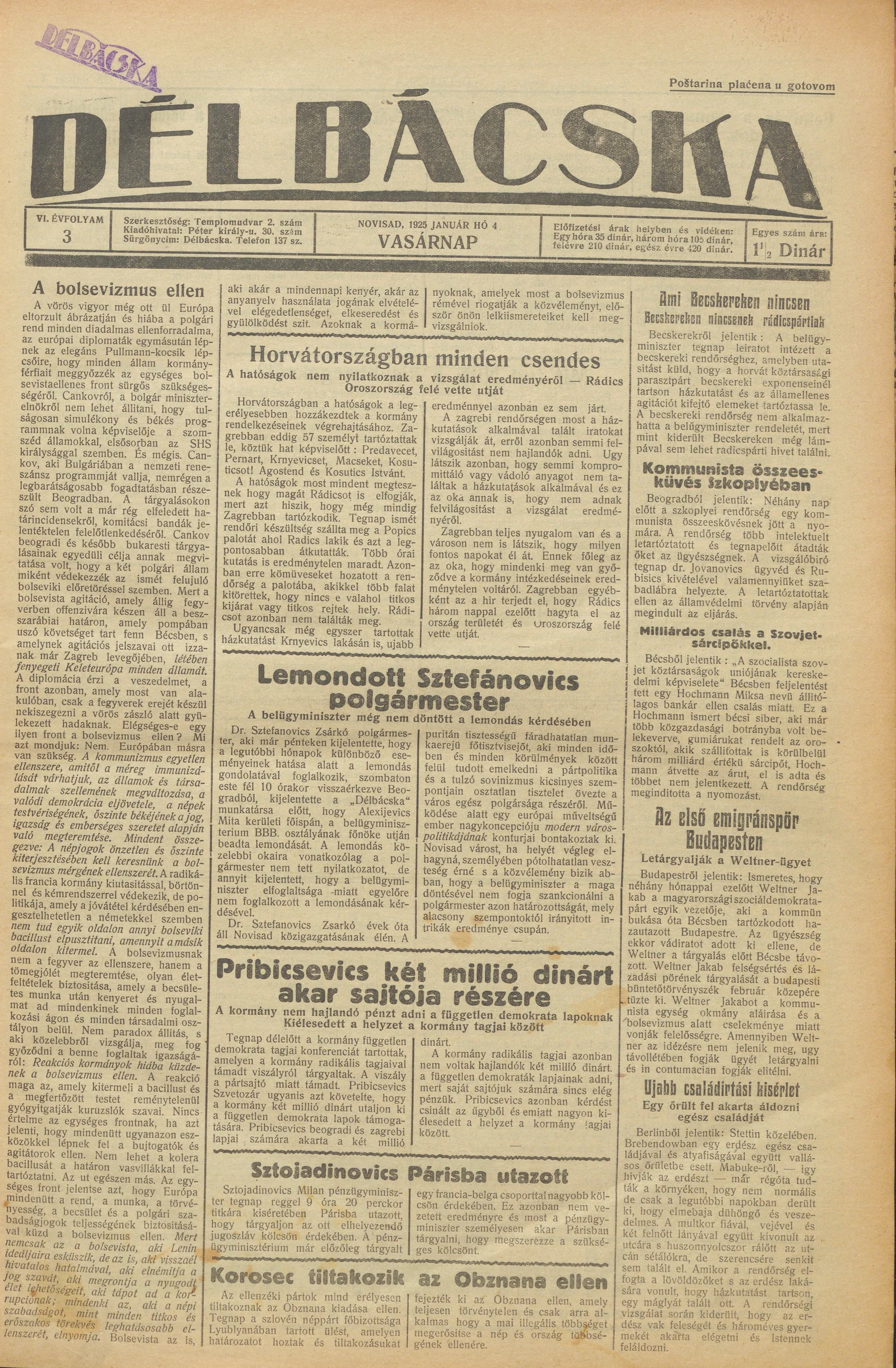 Délbácska, 6. évf. 1925. január 4. 3. sz.