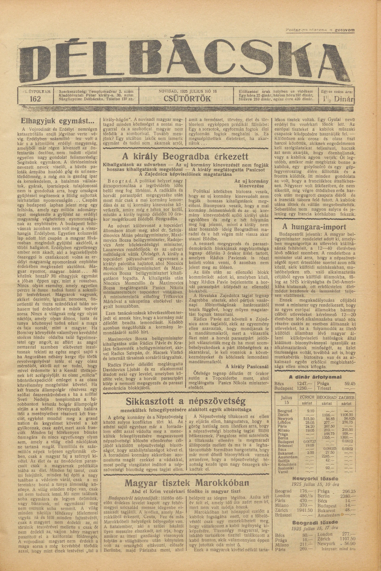 Délbácska, 6. évf. 1925. július 16. 162. sz.