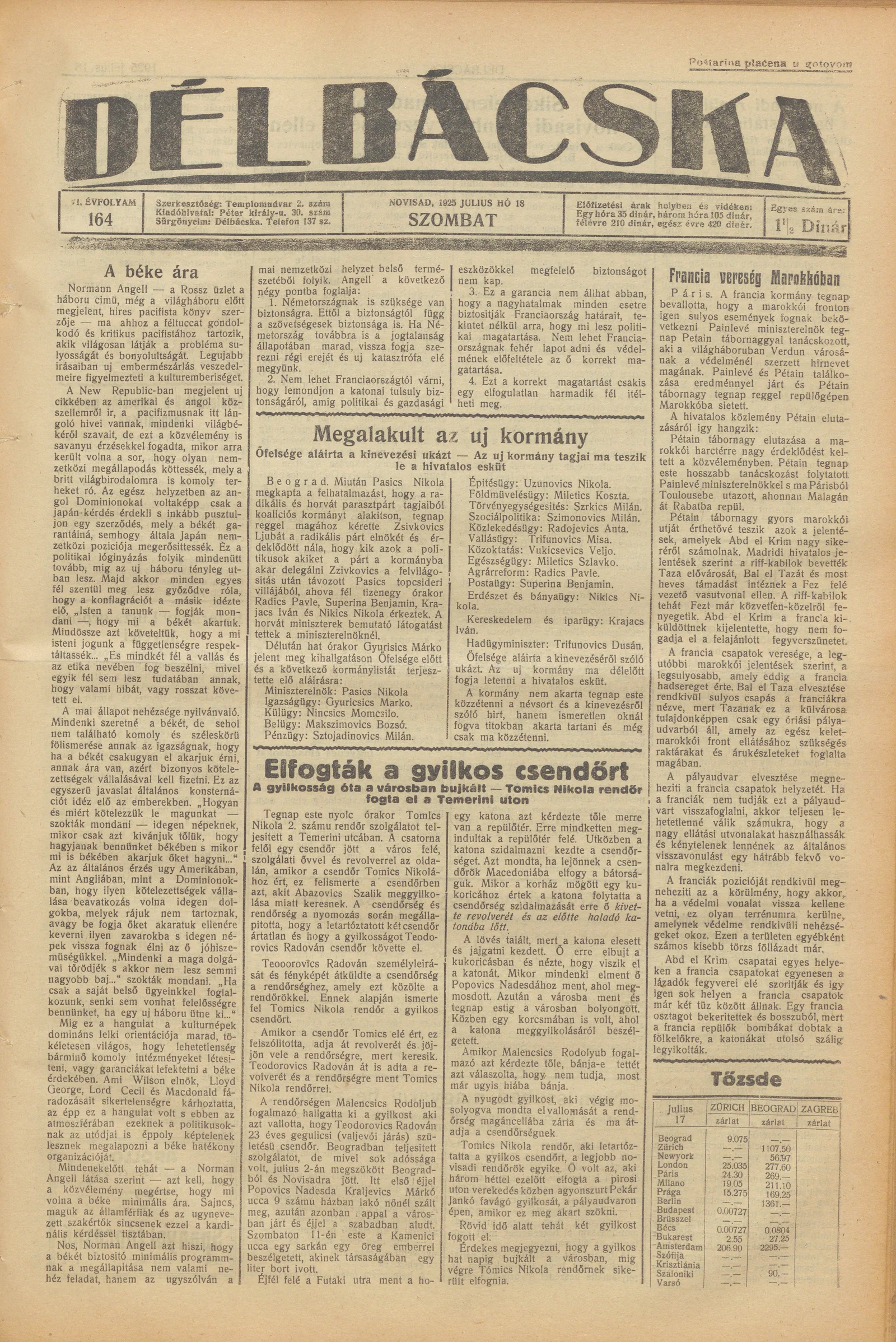 Délbácska, 6. évf. 1925. július 18. 164. sz.