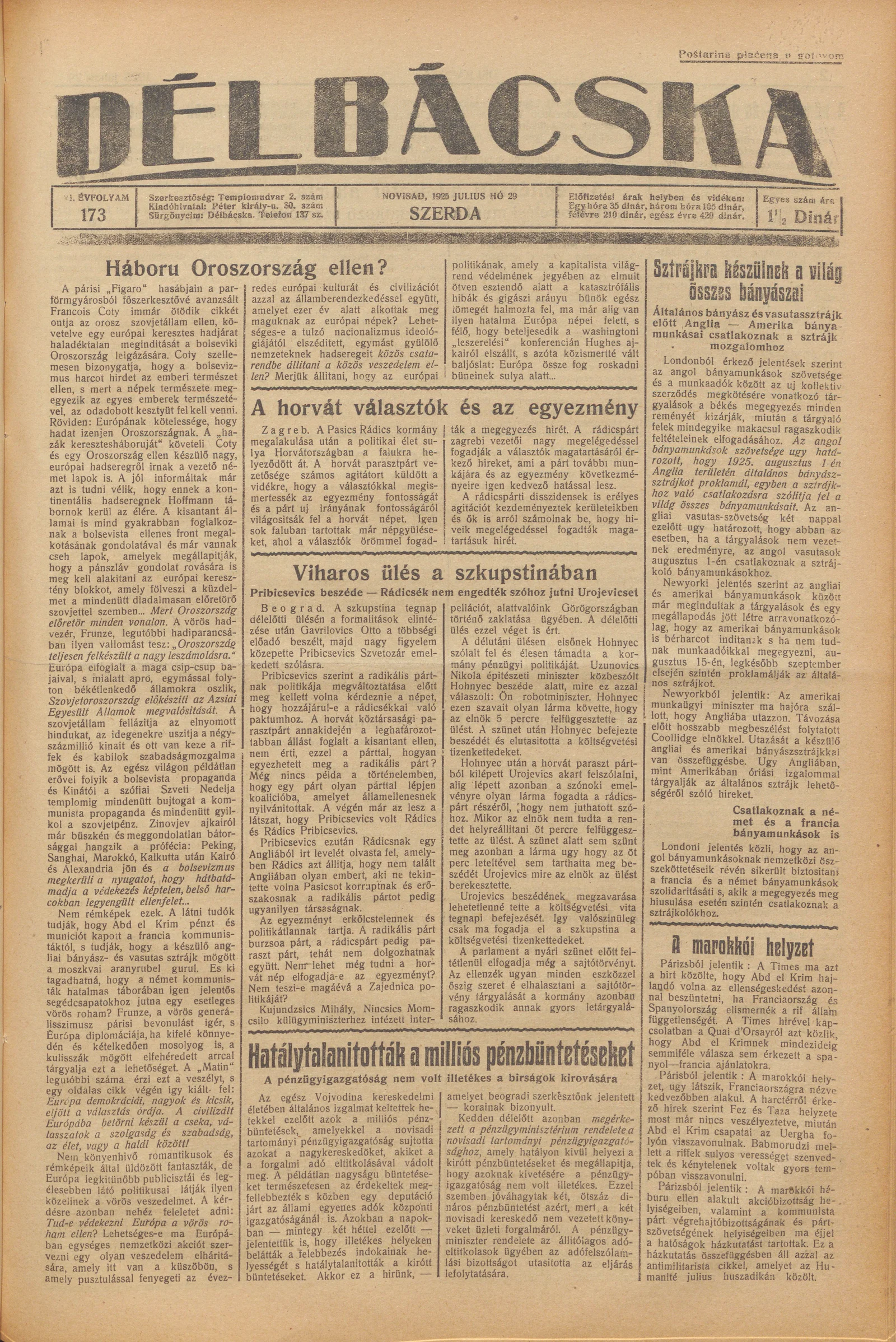 Délbácska, 6. évf. 1925. július 29. 173. sz.