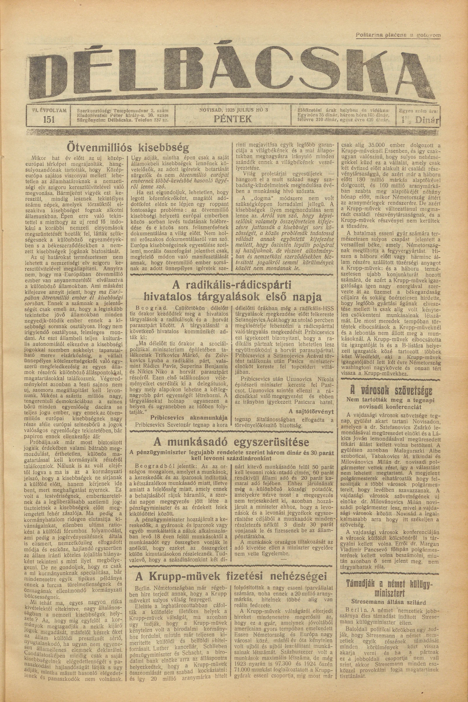 Délbácska, 6. évf. 1925. július 3. 151. sz.