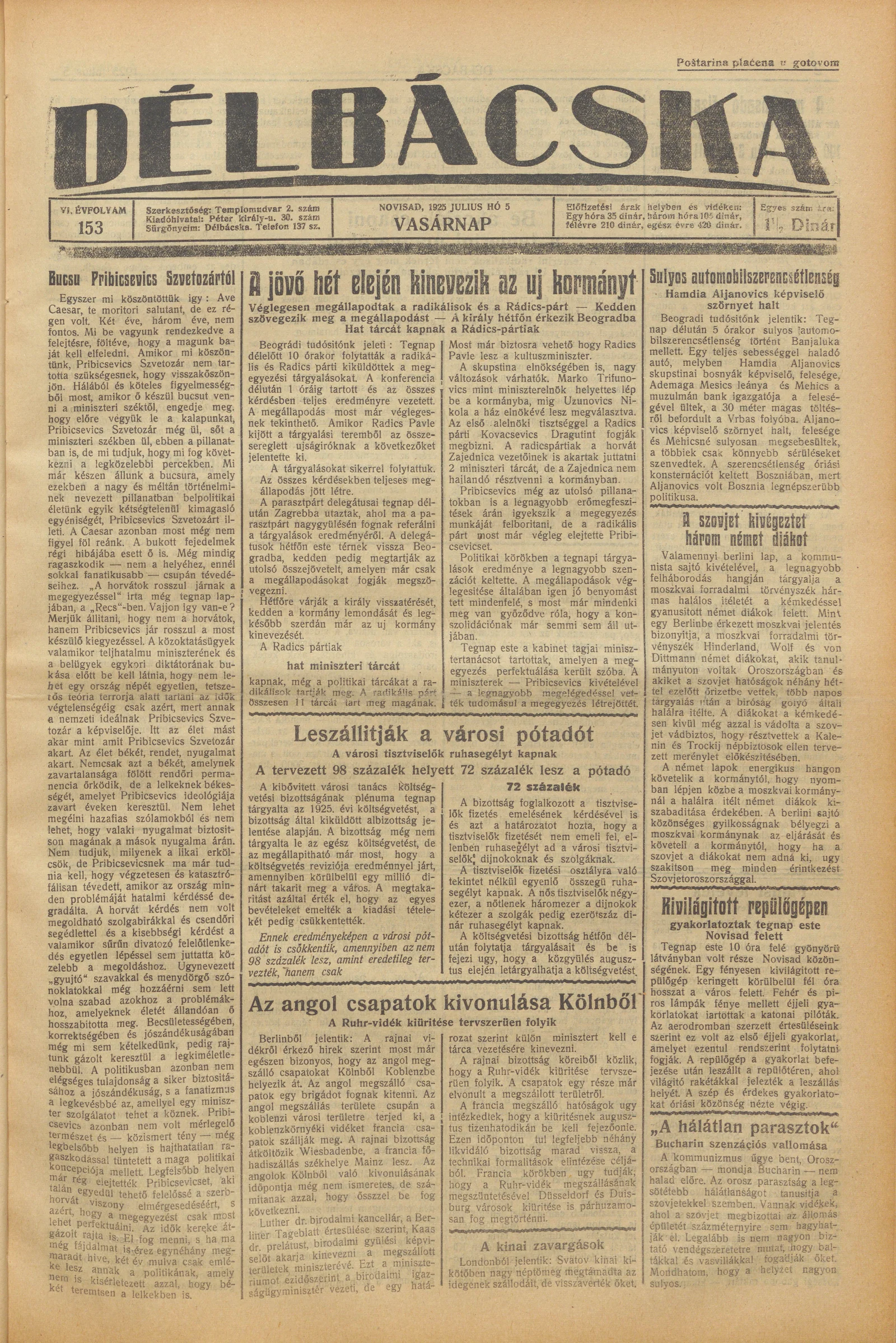 Délbácska, 6. évf. 1925. július 5. 153. sz.