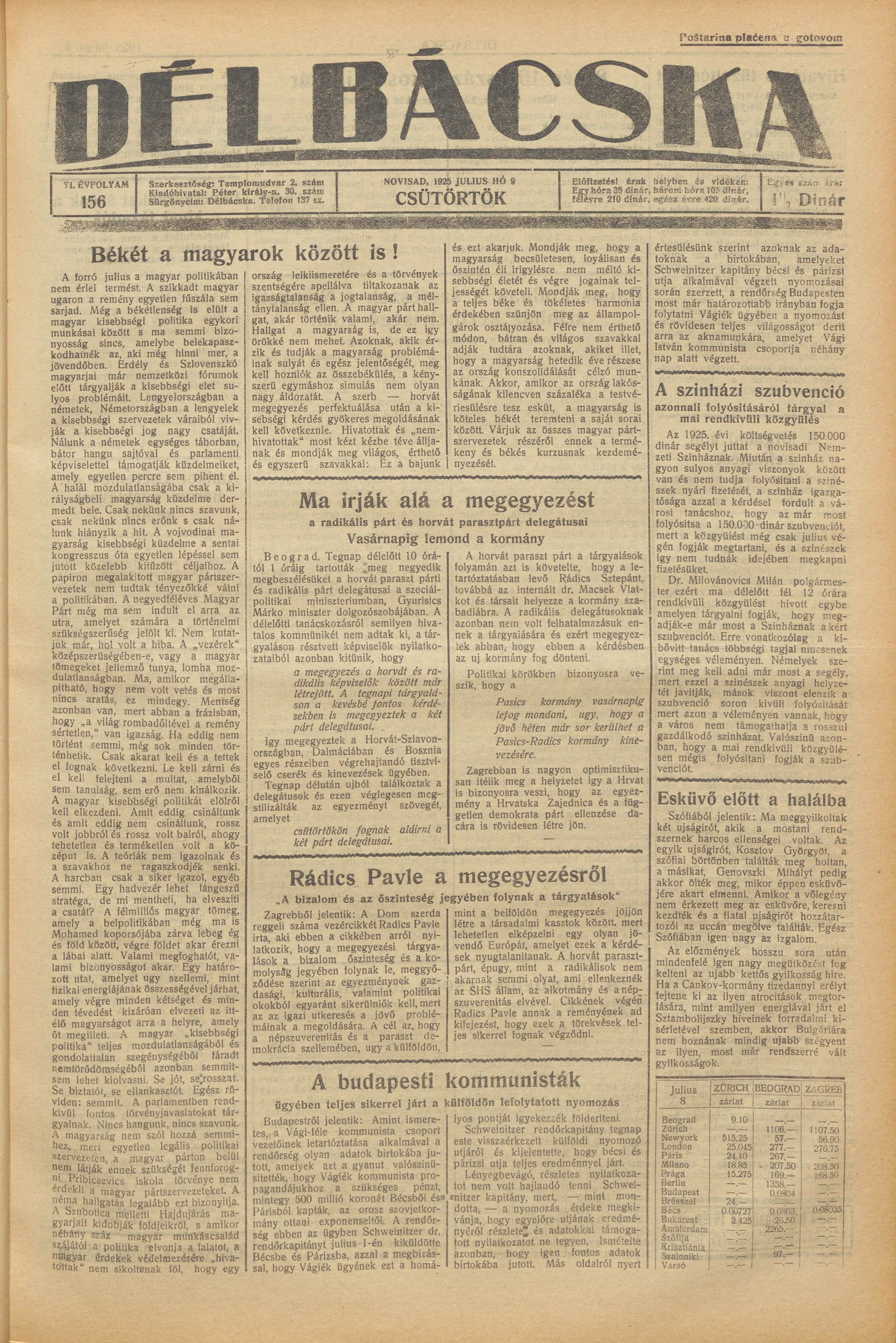 Délbácska, 6. évf. 1925. július 9. 156. sz.