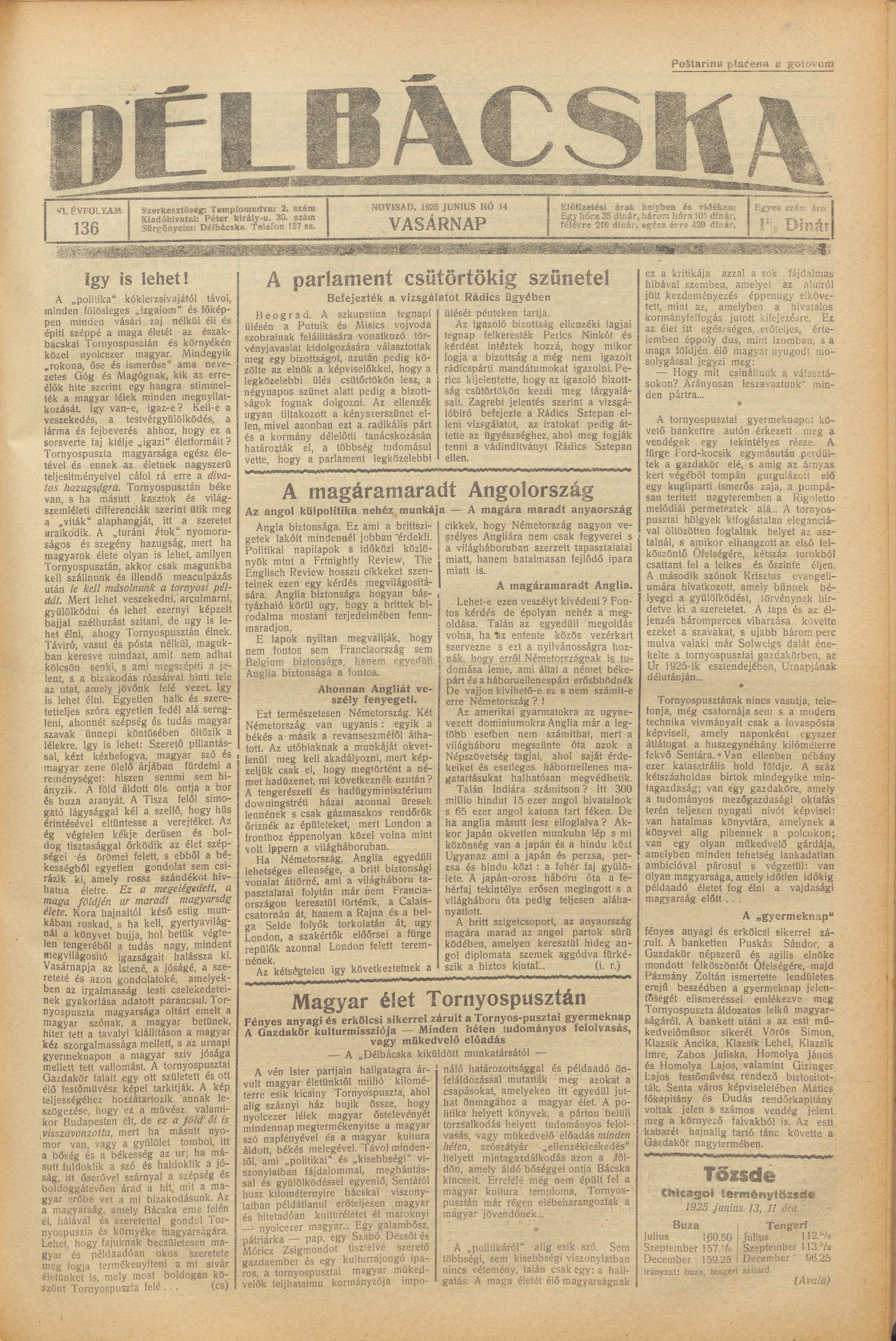 Délbácska, 6. évf. 1925. június 14. 136. sz.