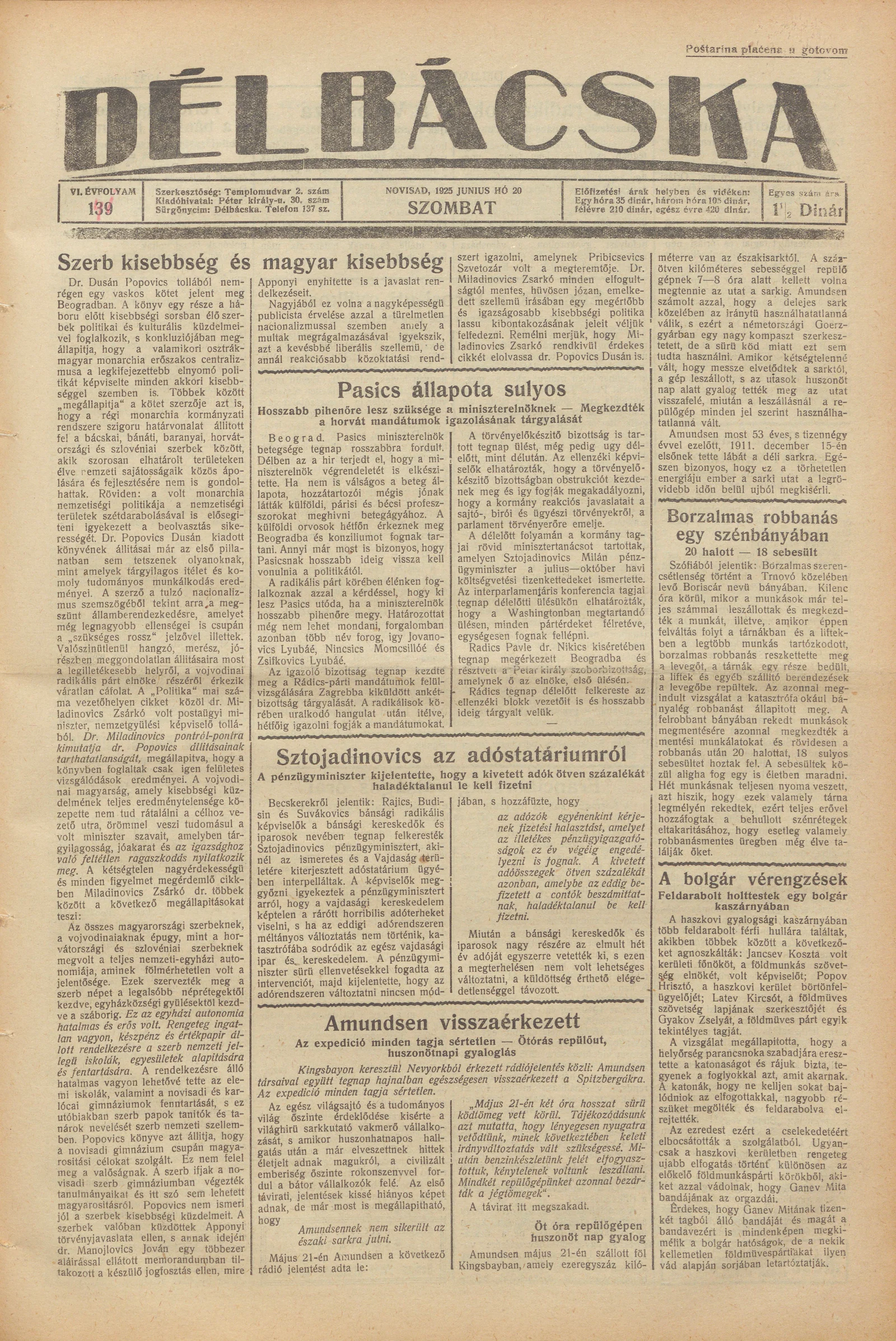 Délbácska, 6. évf. 1925. június 20. 141. sz.