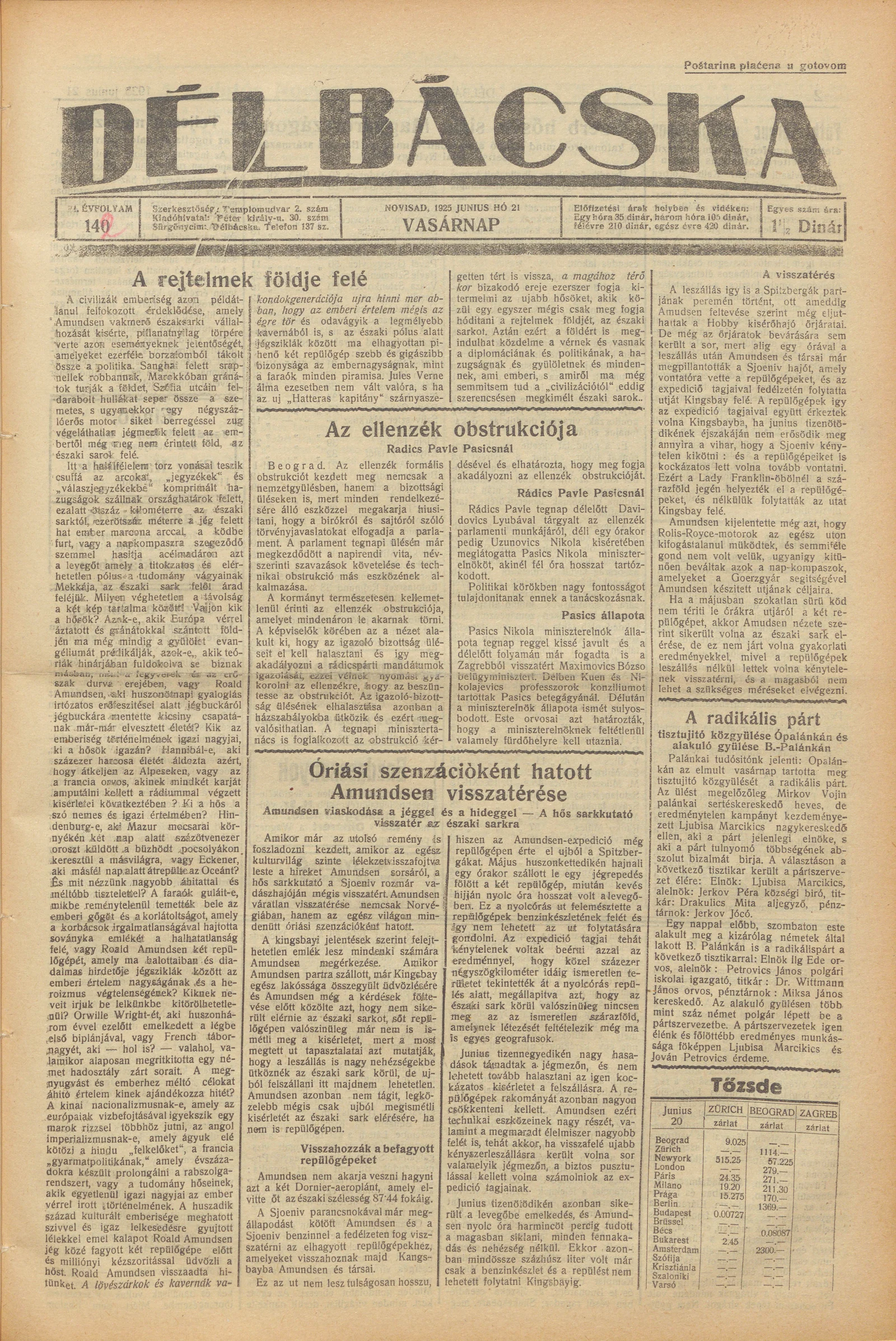 Délbácska, 6. évf. 1925. június 21. 142. sz.