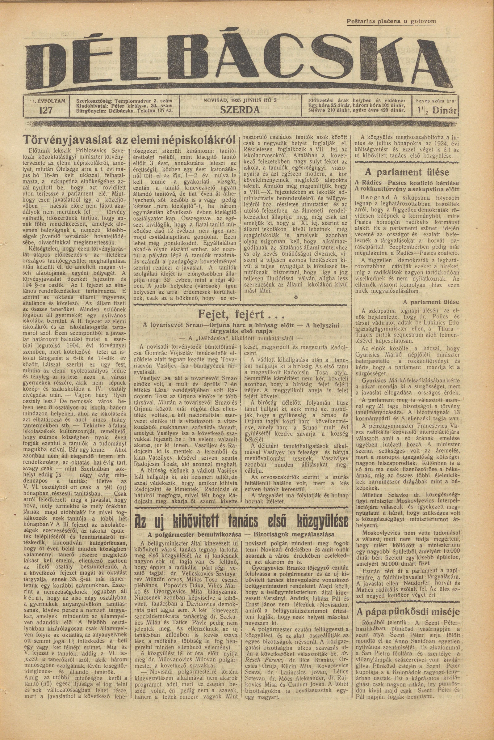 Délbácska, 6. évf. 1925. június 3. 127. sz.