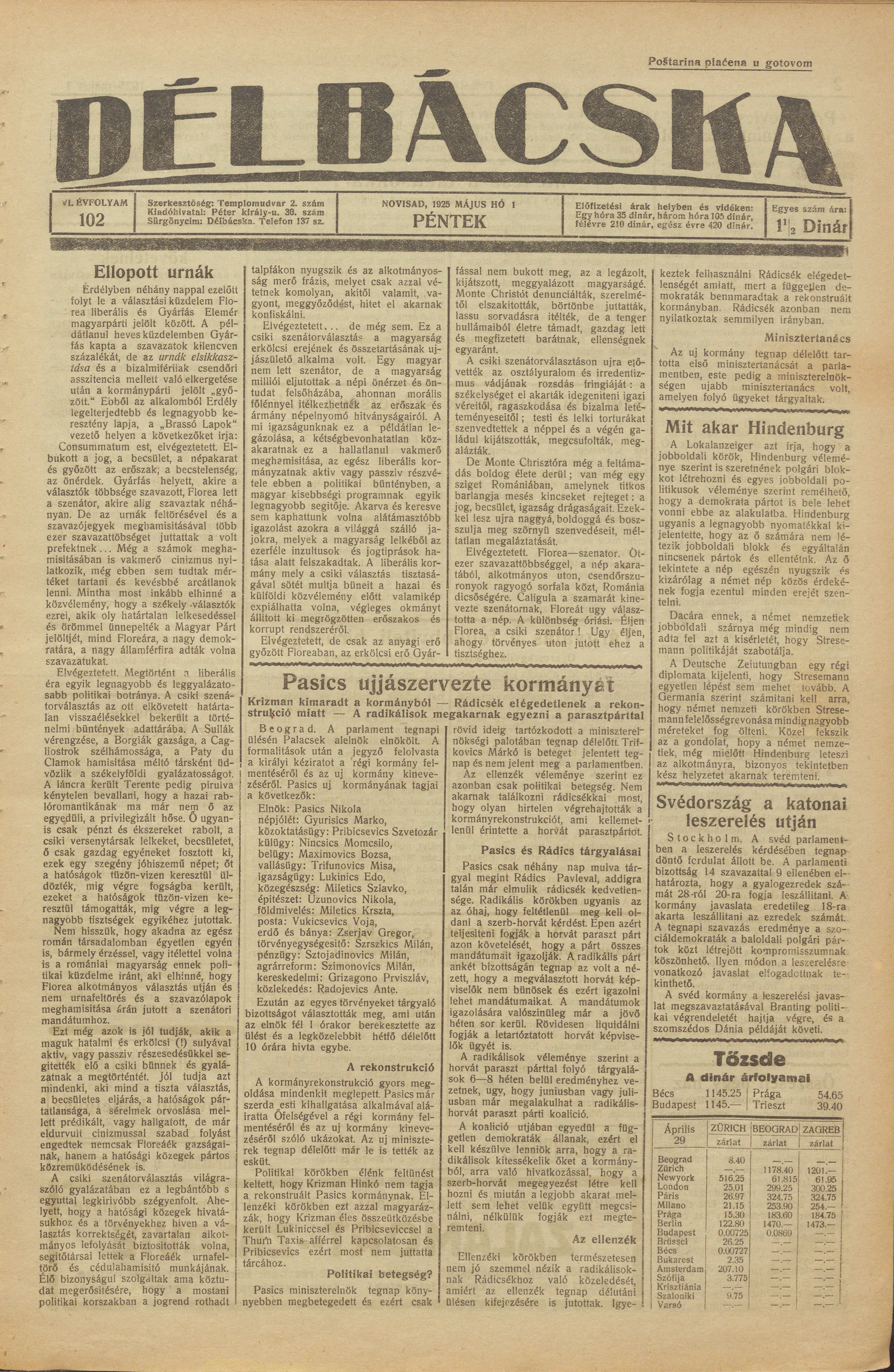 Délbácska, 6. évf. 1925. május 1. 102. sz.