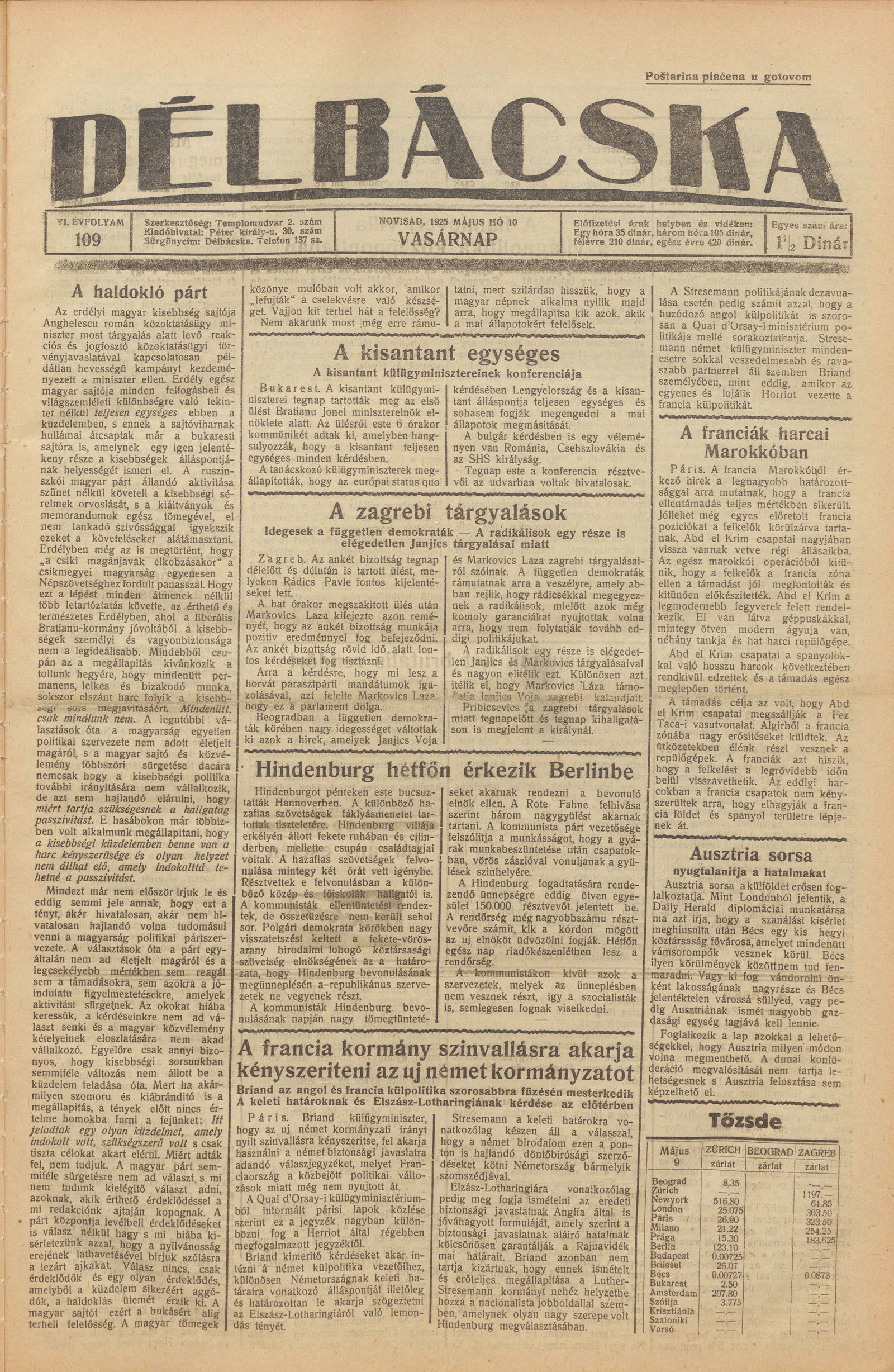 Délbácska, 6. évf. 1925. május 10. 109. sz.