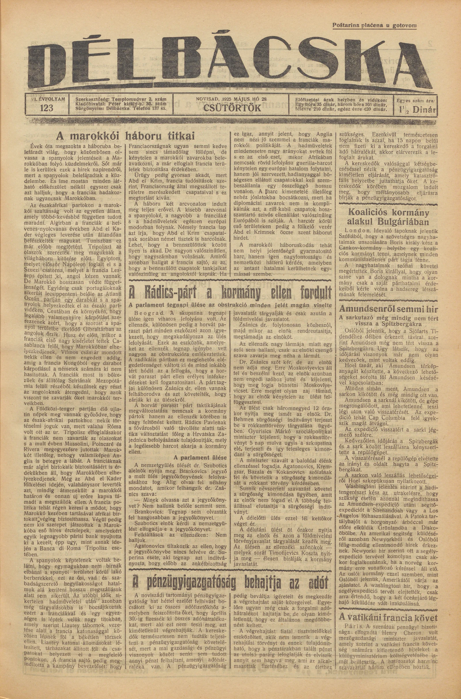 Délbácska, 6. évf. 1925. május 28. 123. sz.