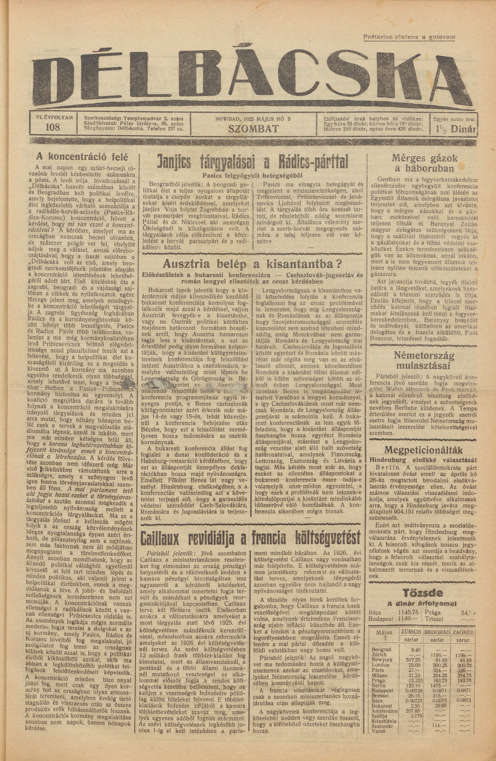 Délbácska, 6. évf. 1925. május 9. 108. sz.