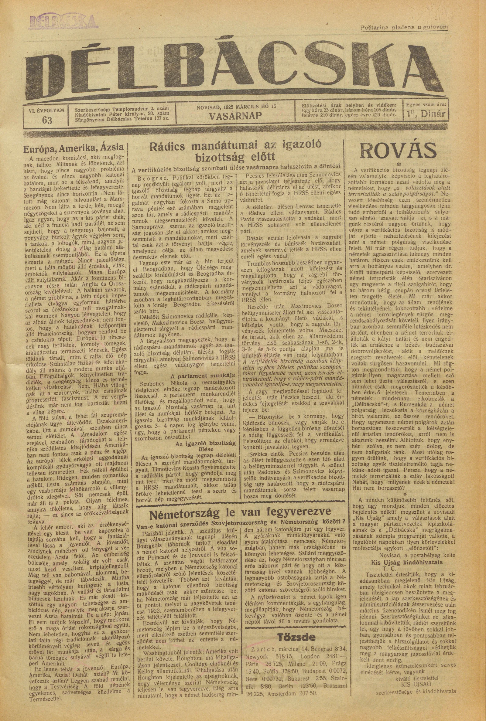 Délbácska, 6. évf. 1925. március 15. 63. sz.