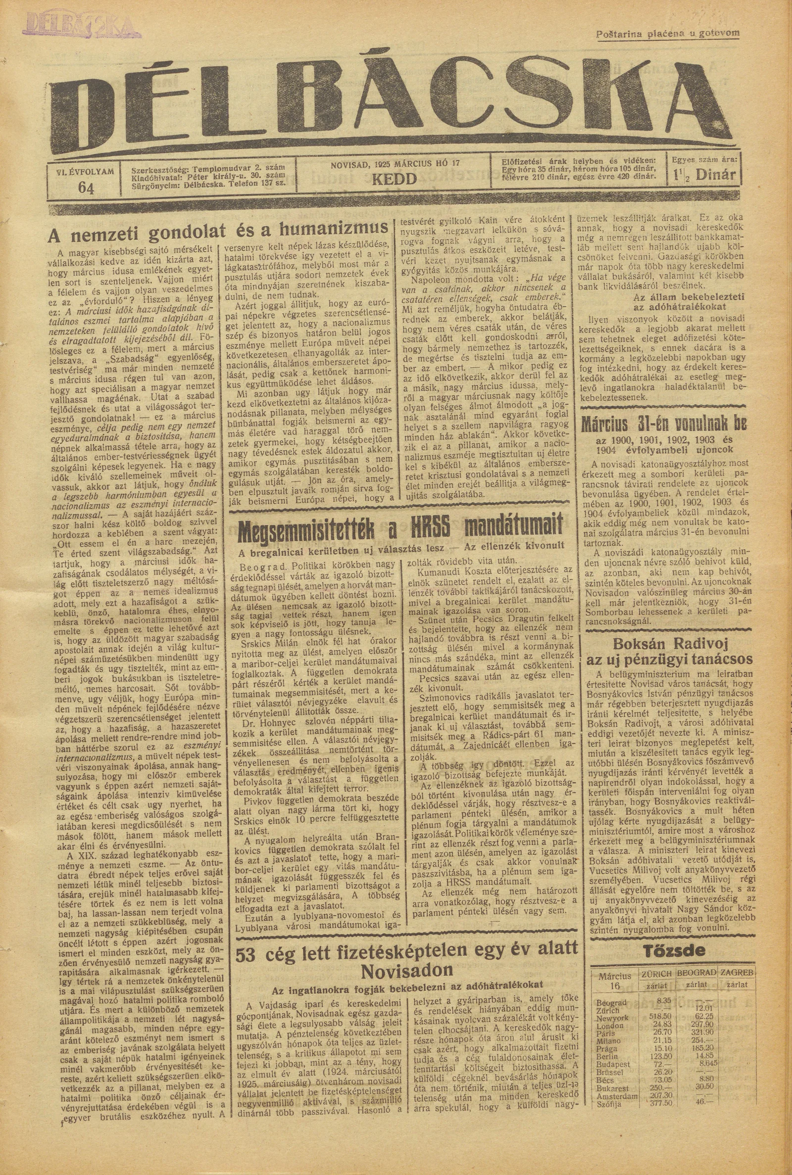 Délbácska, 6. évf. 1925. március 17. 64. sz.