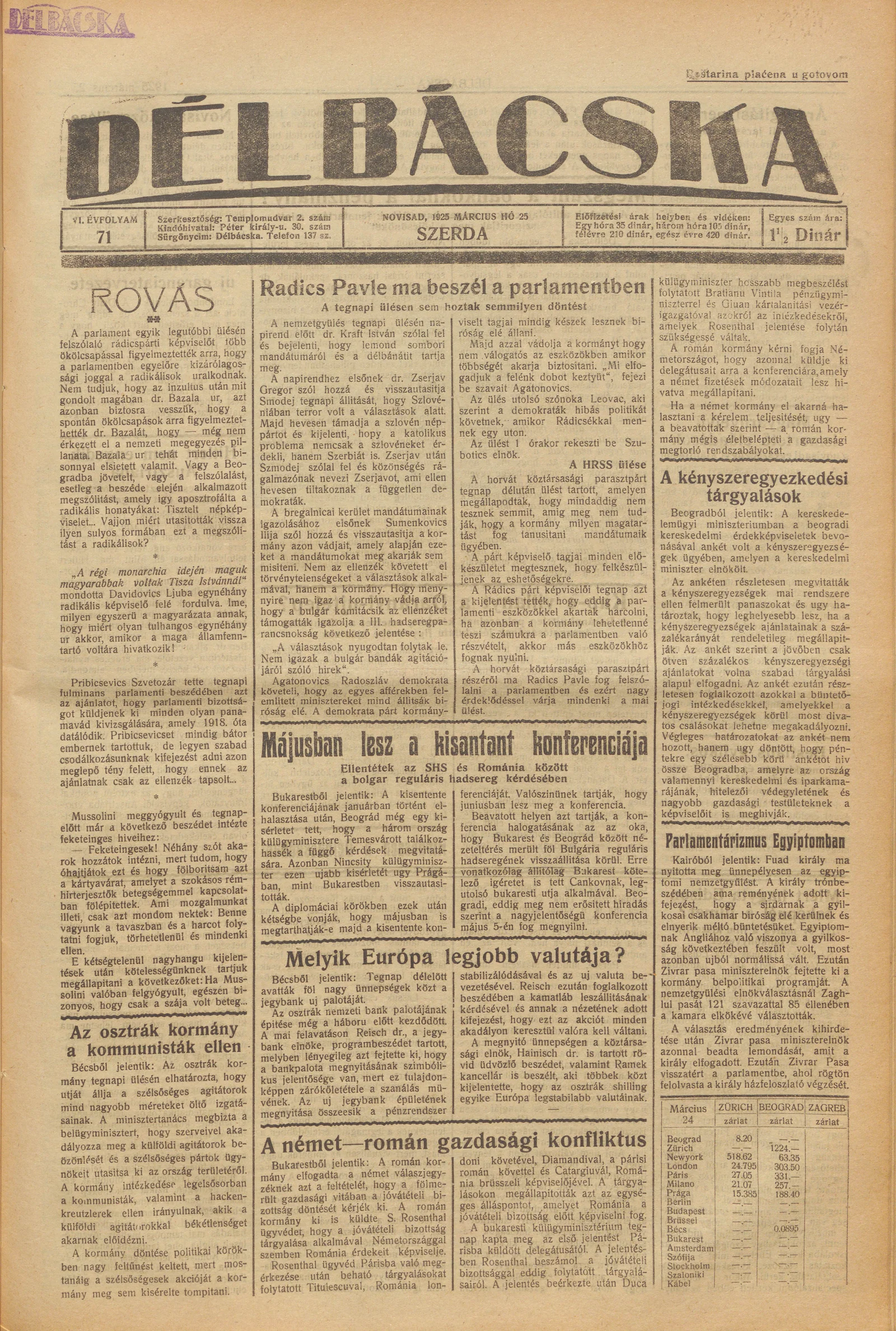 Délbácska, 6. évf. 1925. március 25. 71. sz.