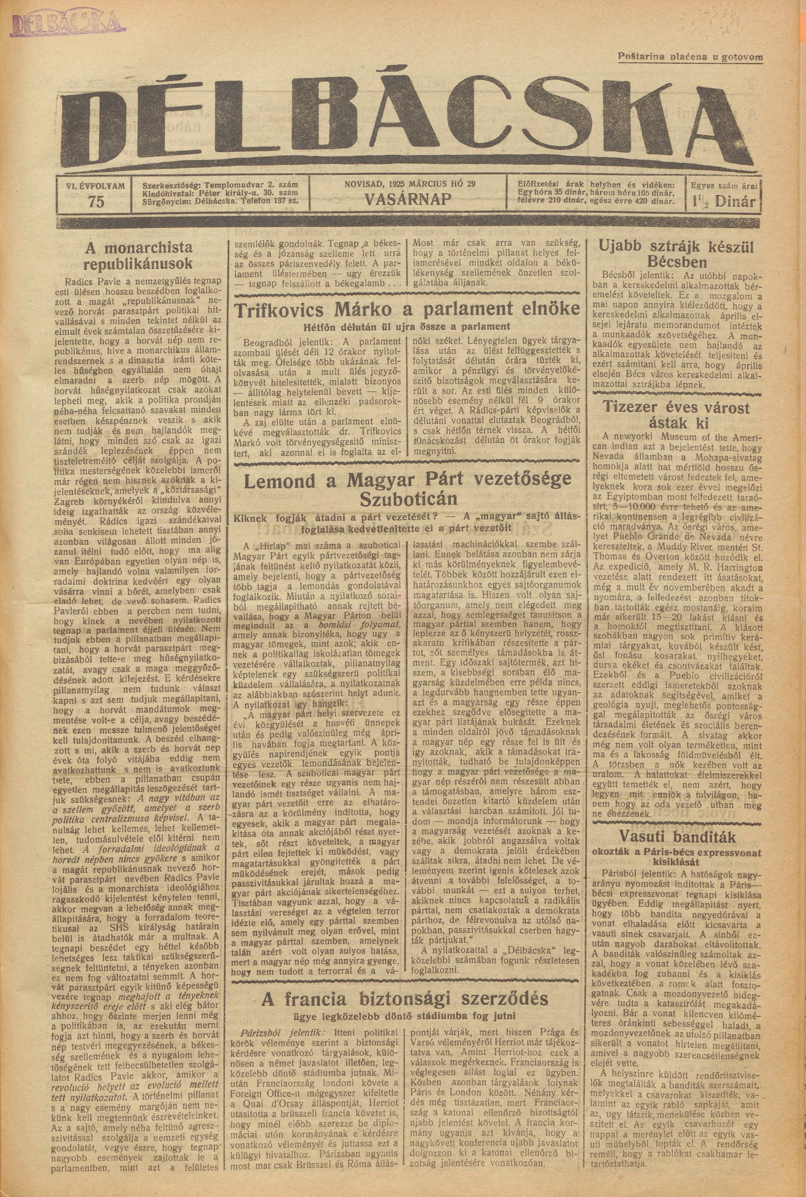 Délbácska, 6. évf. 1925. március 29. 75. sz.