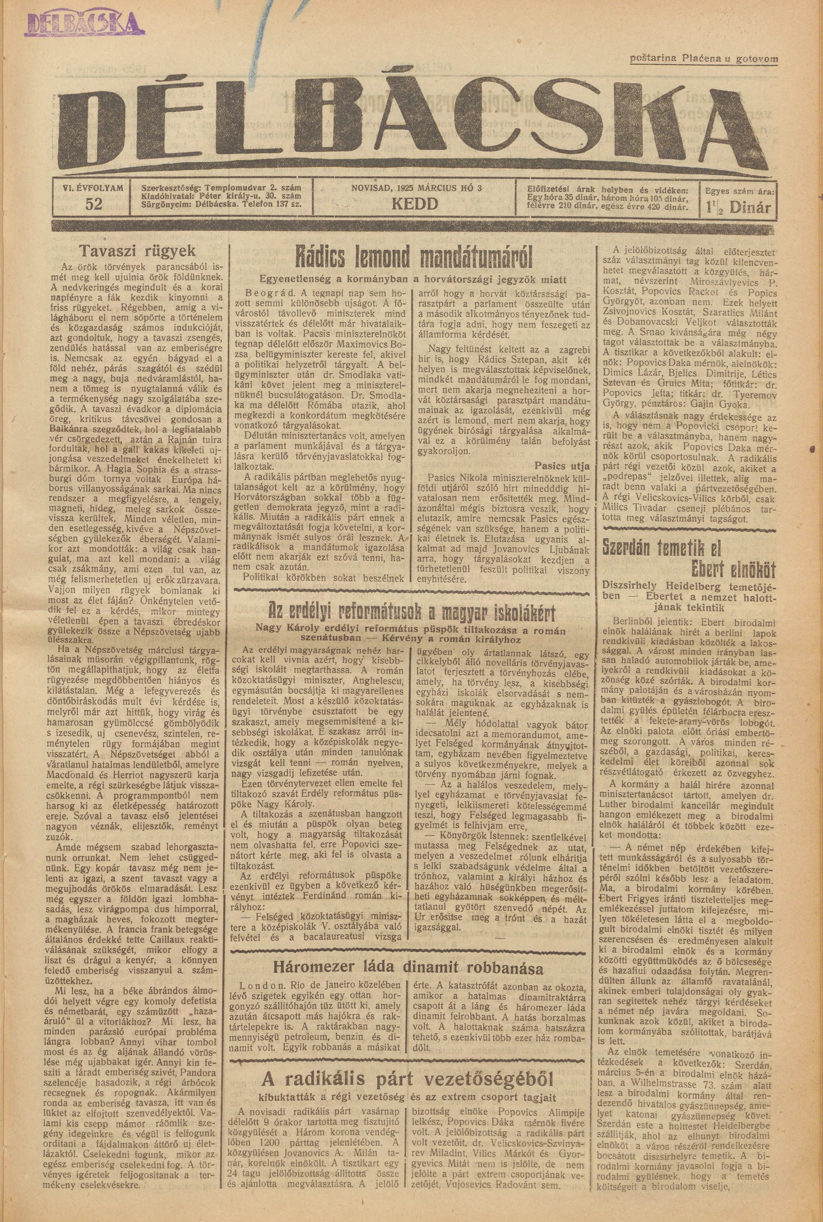 Délbácska, 6. évf. 1925. március 3. 52. sz.