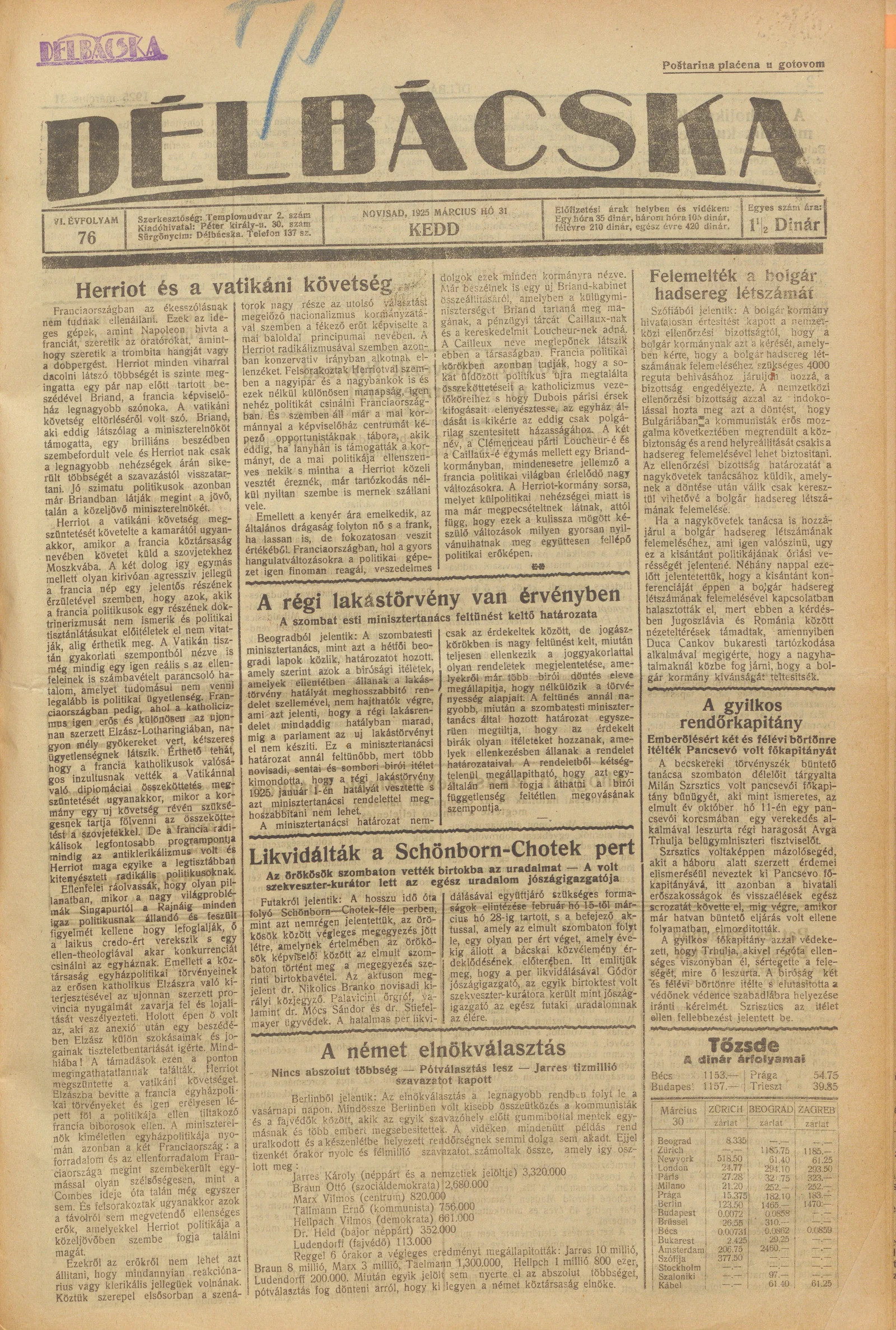 Délbácska, 6. évf. 1925. március 31. 76. sz.