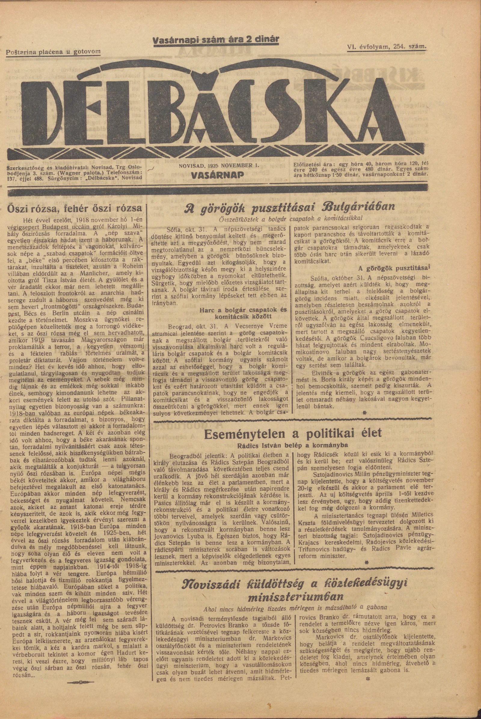 Délbácska, 6. évf. 1925. november 1. 254. sz.