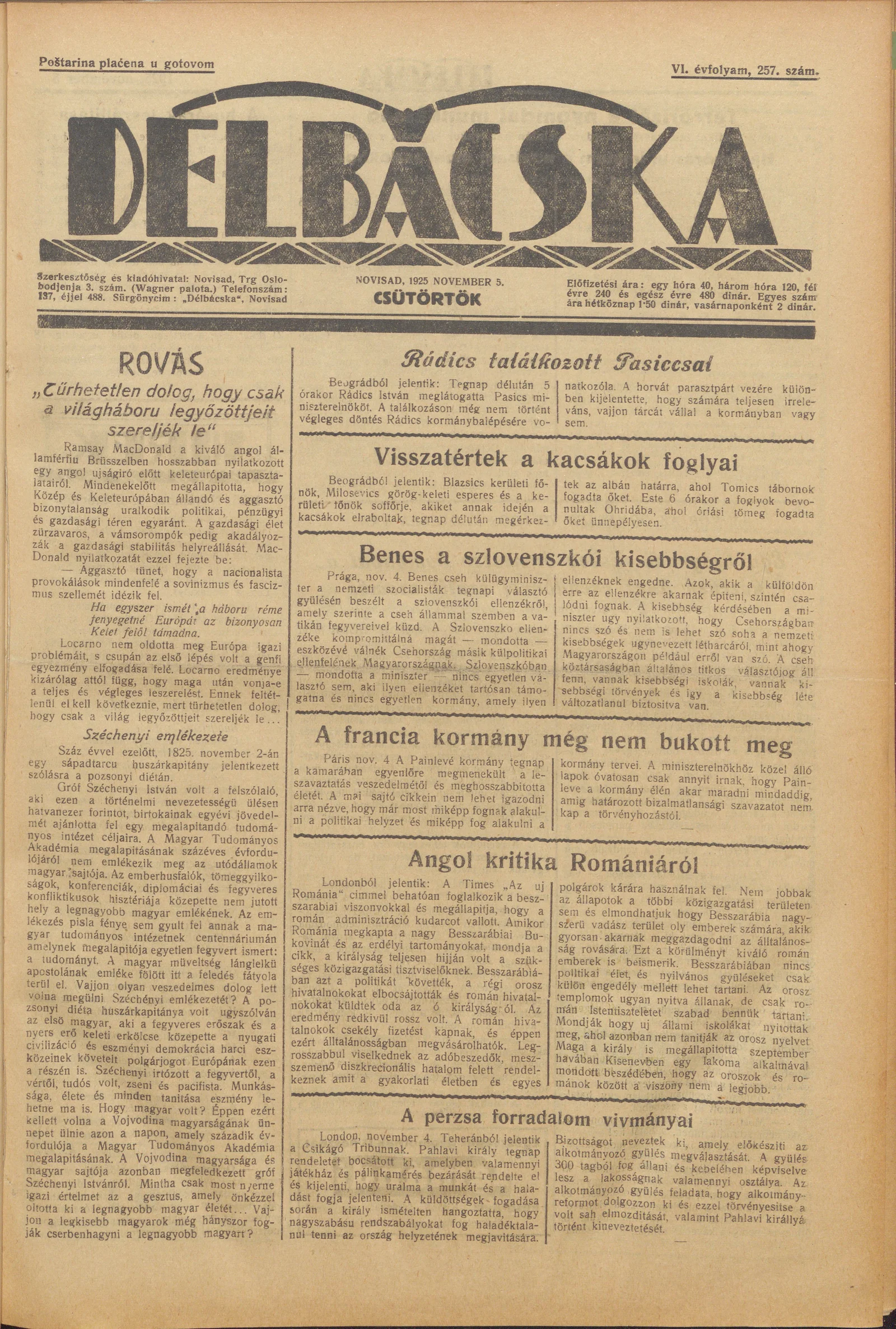 Délbácska, 6. évf. 1925. november 5. 257. sz.