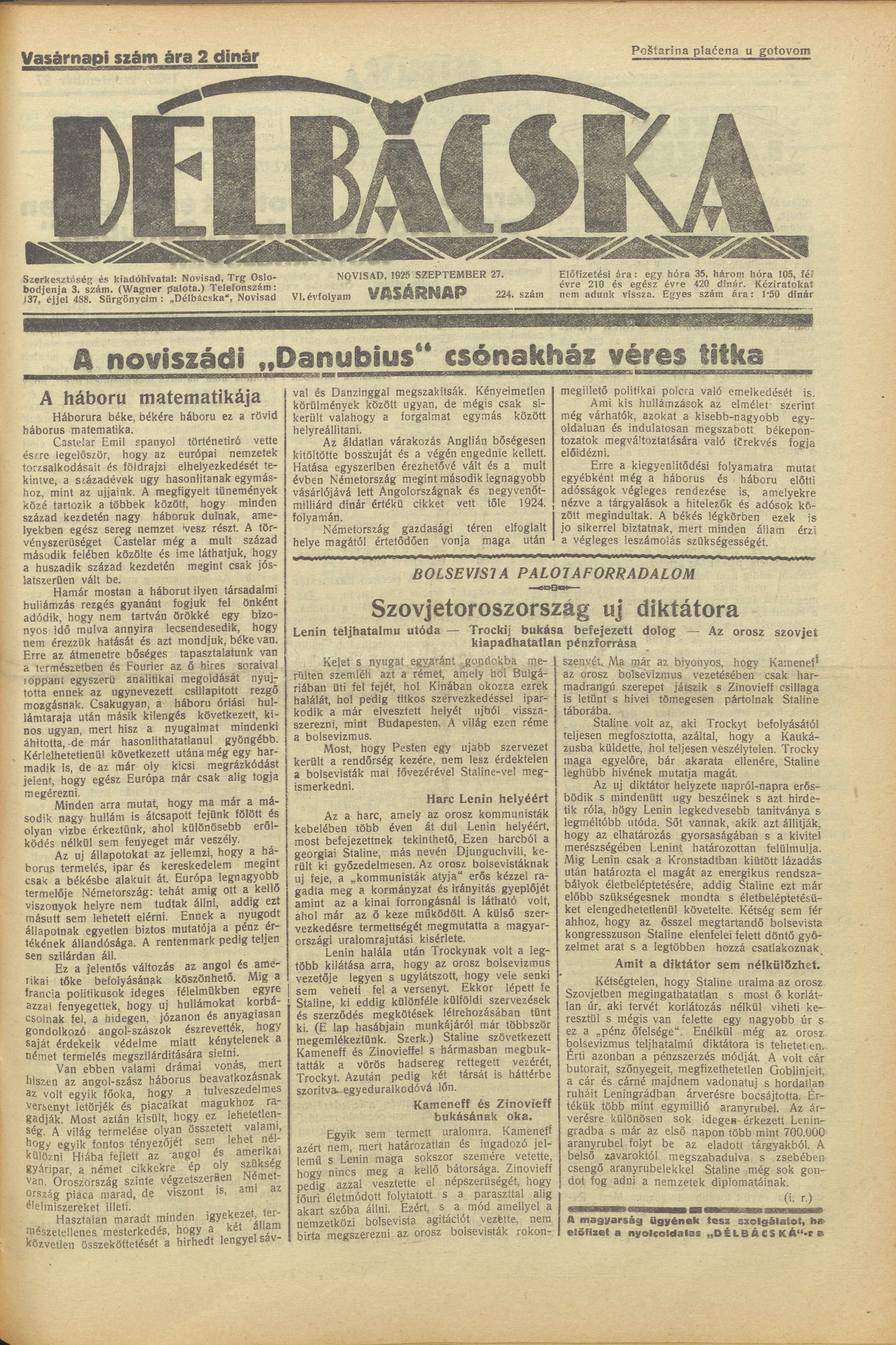 Délbácska, 6. évf. 1925. szeptember 27. 224. sz.