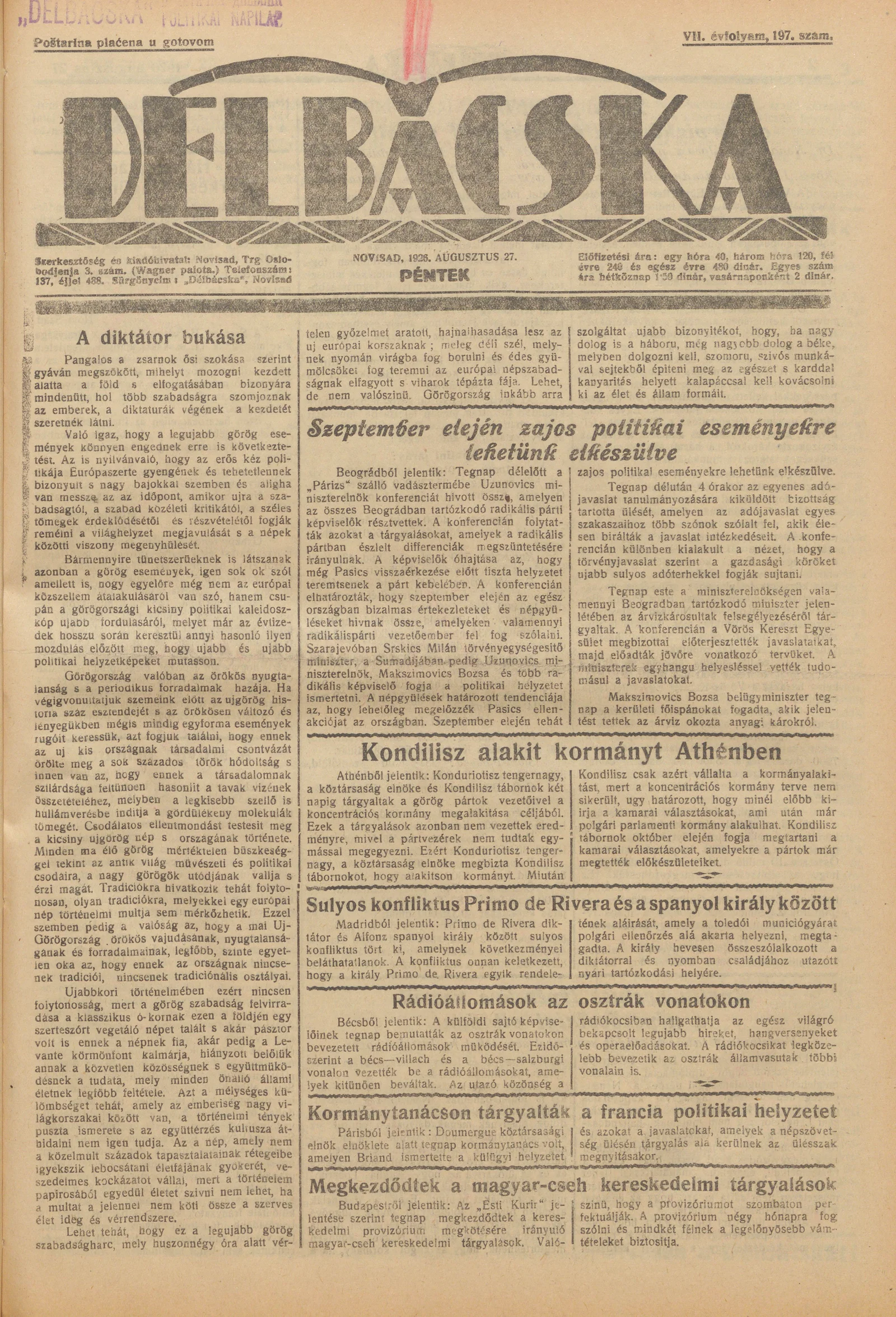 Délbácska, 7. évf. 1926. augusztus 27. 197. sz.