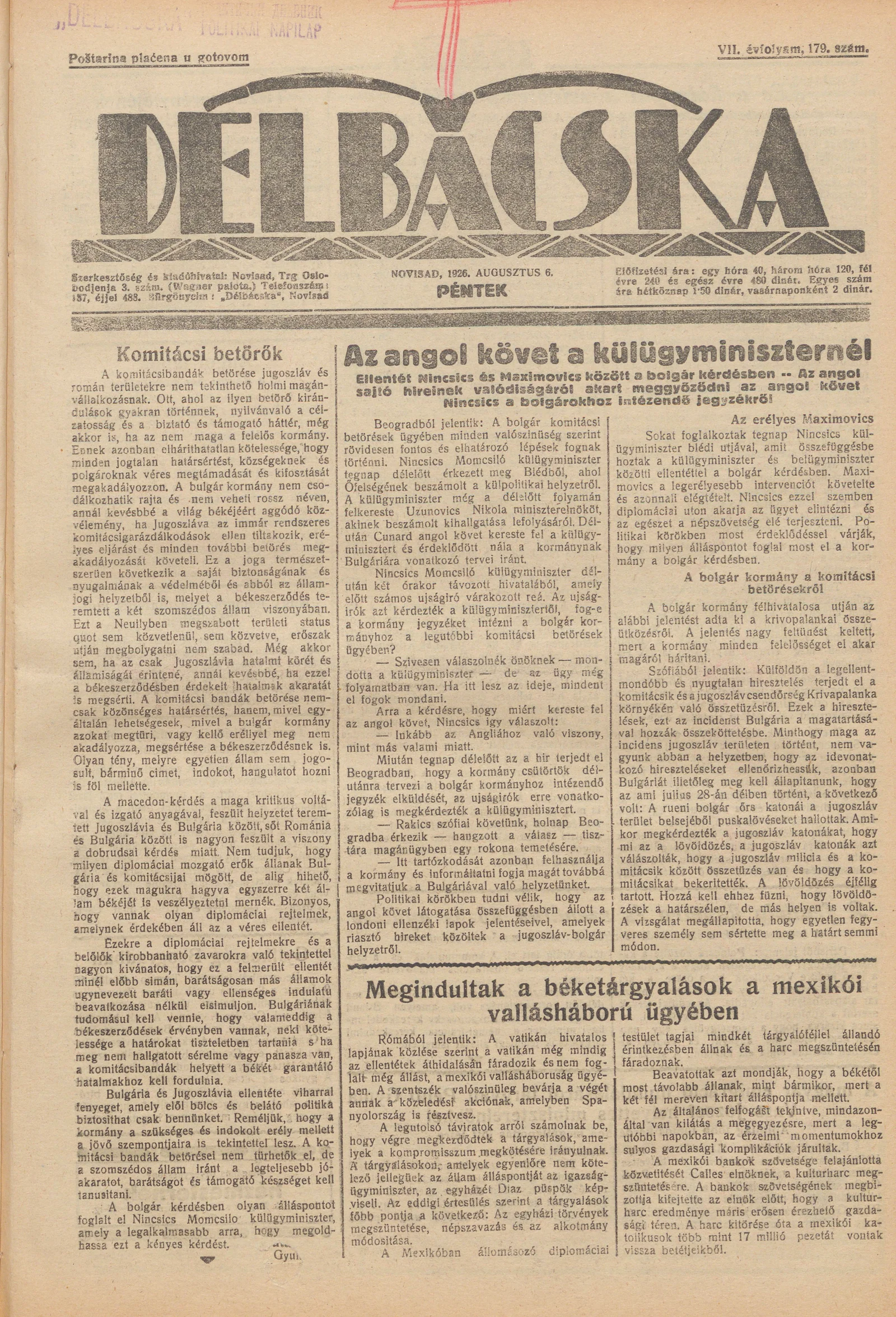 Délbácska, 7. évf. 1926. augusztus 6. 179. sz.