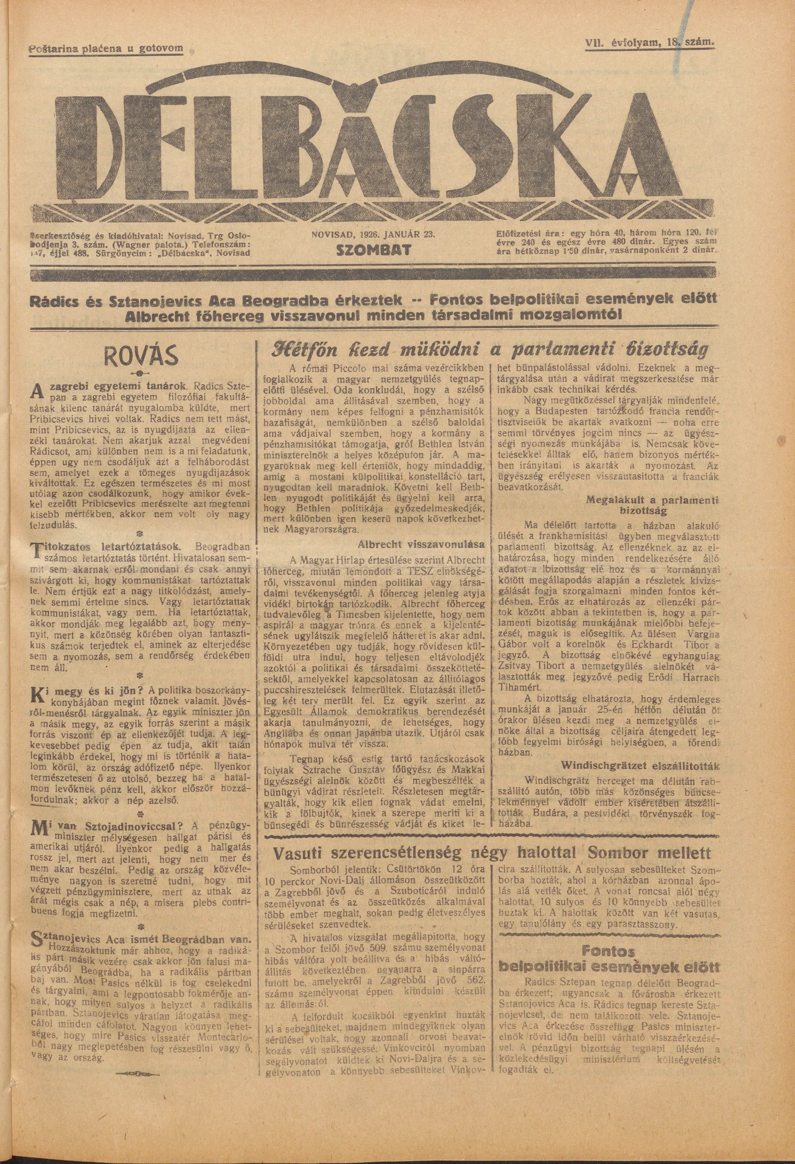 Délbácska, 7. évf. 1926. január 23. 18. sz.