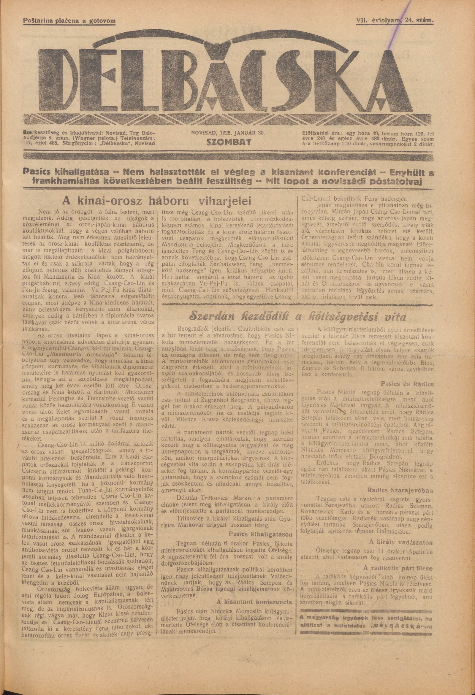 Délbácska, 7. évf. 1926. január 30. 24. sz.