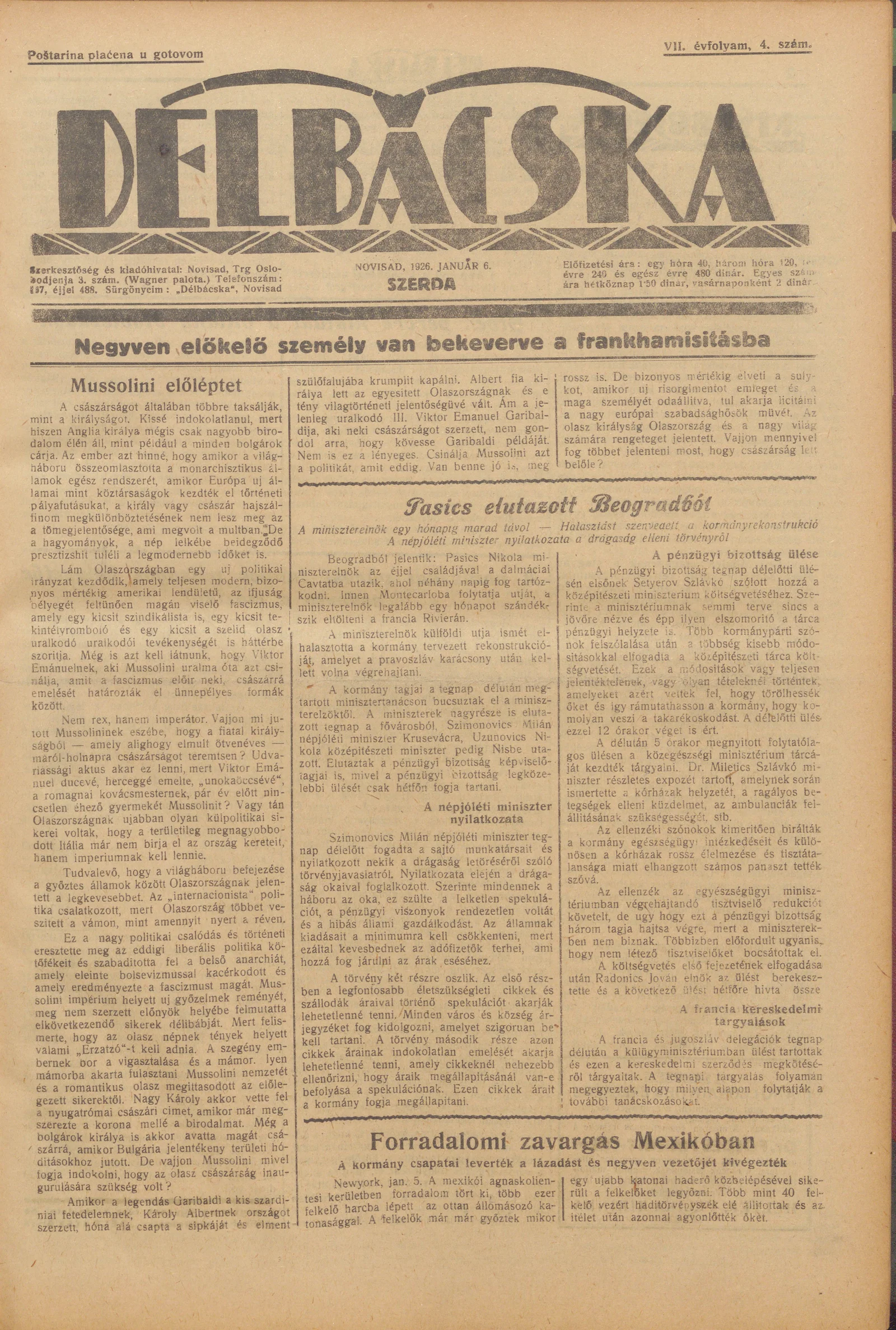Délbácska, 7. évf. 1926. január 6. 4. sz.
