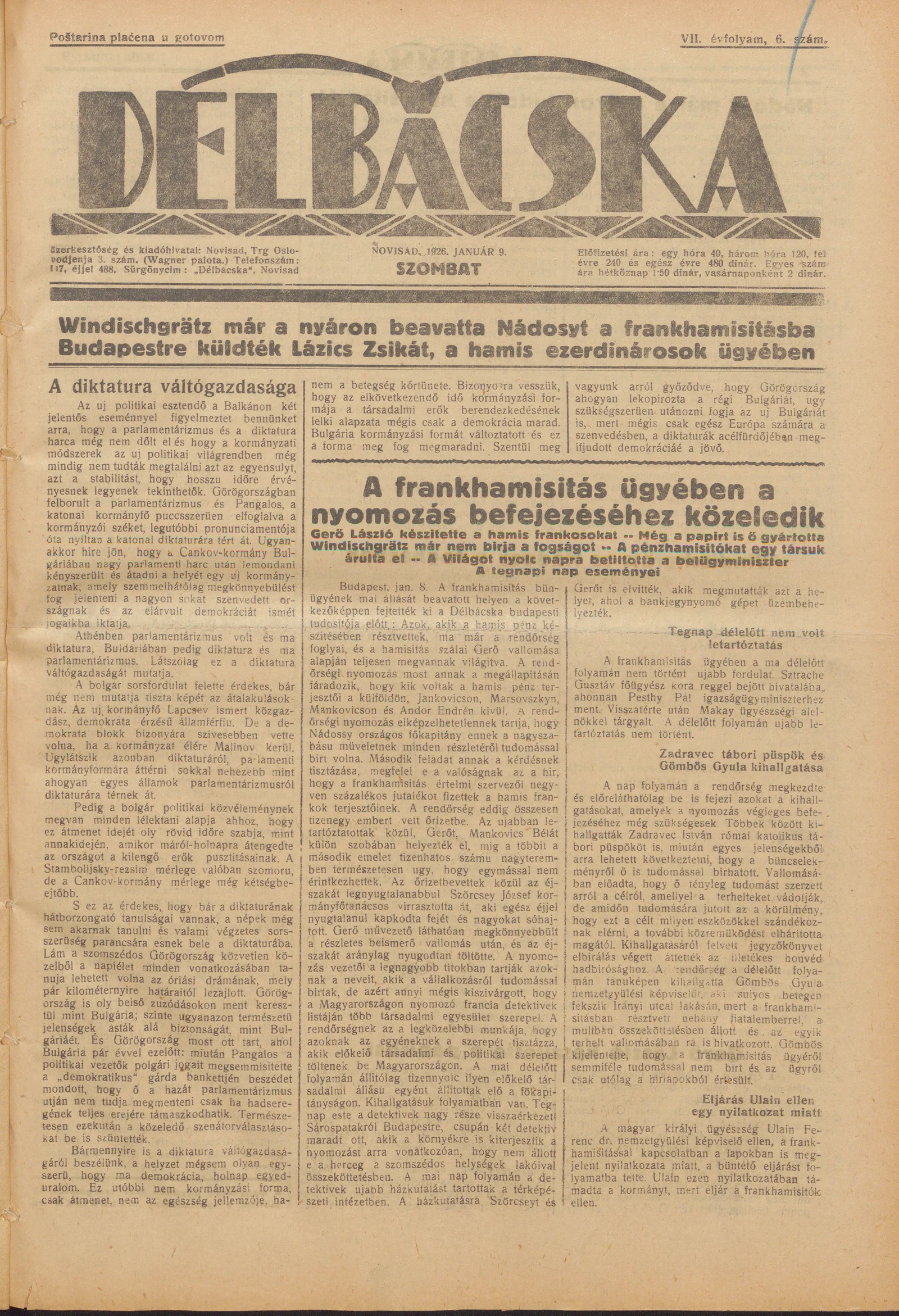 Délbácska, 7. évf. 1926. január 9. 6. sz.