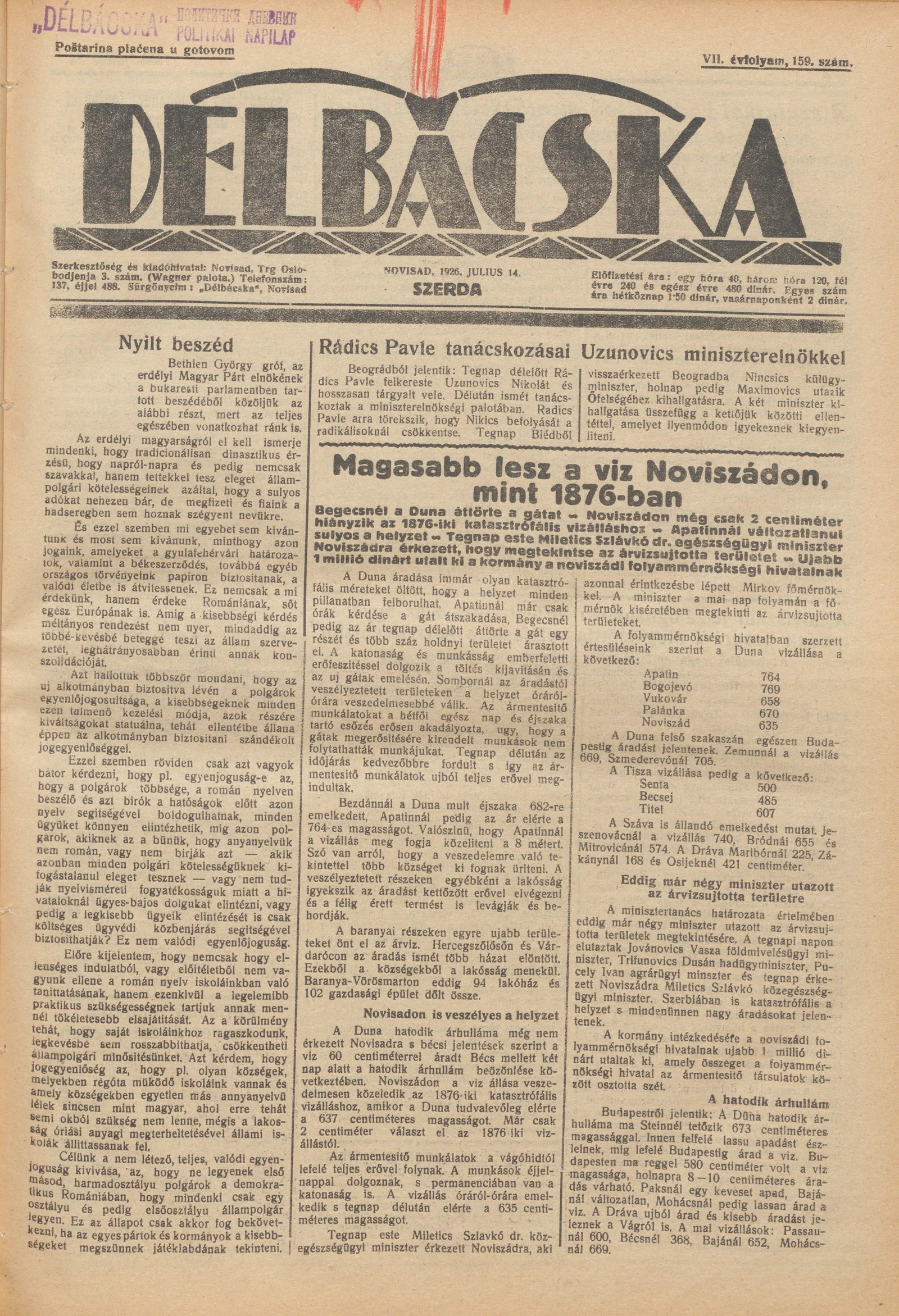 Délbácska, 7. évf. 1926. július 14. 159. sz.