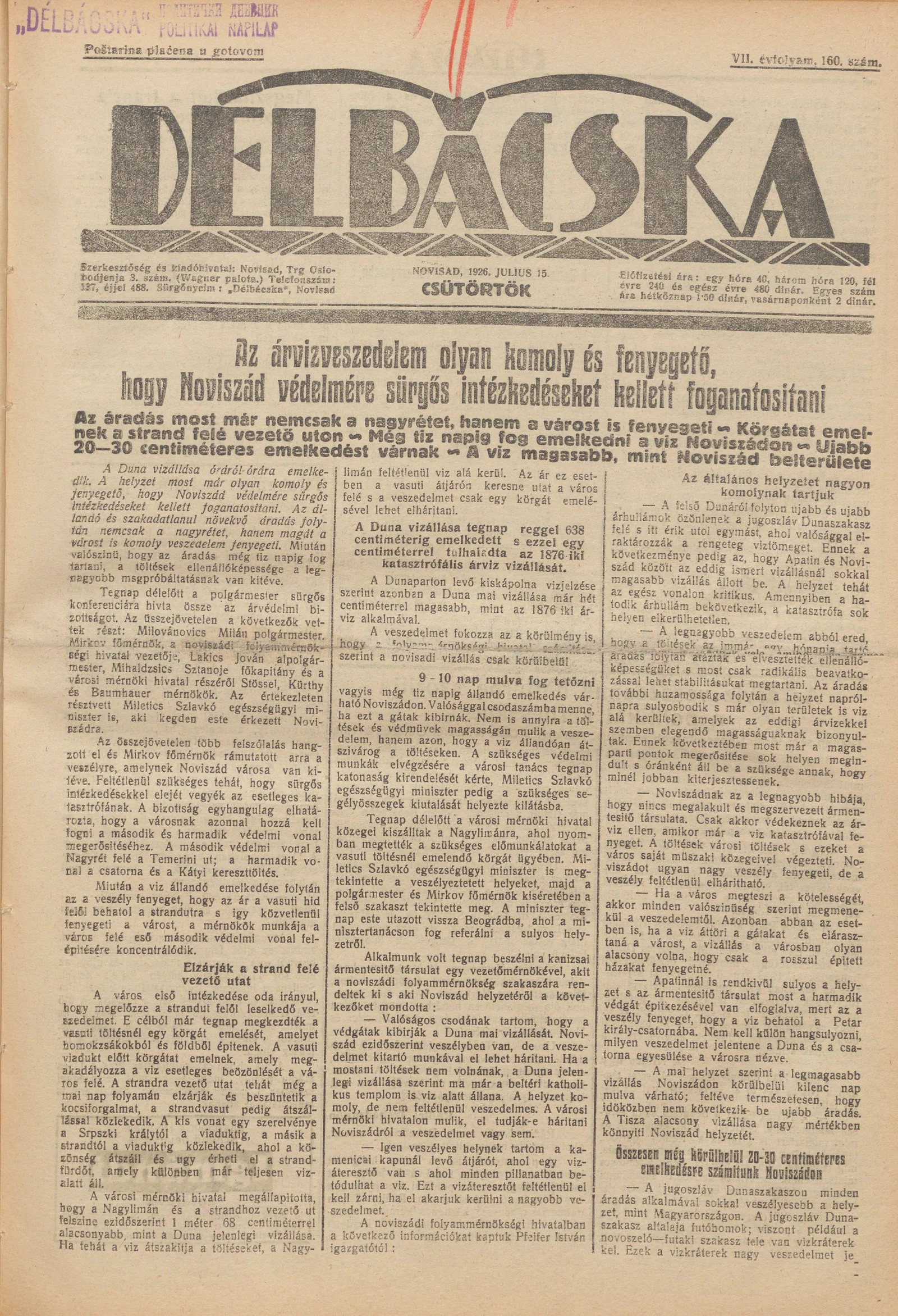 Délbácska, 7. évf. 1926. július 15. 160. sz.