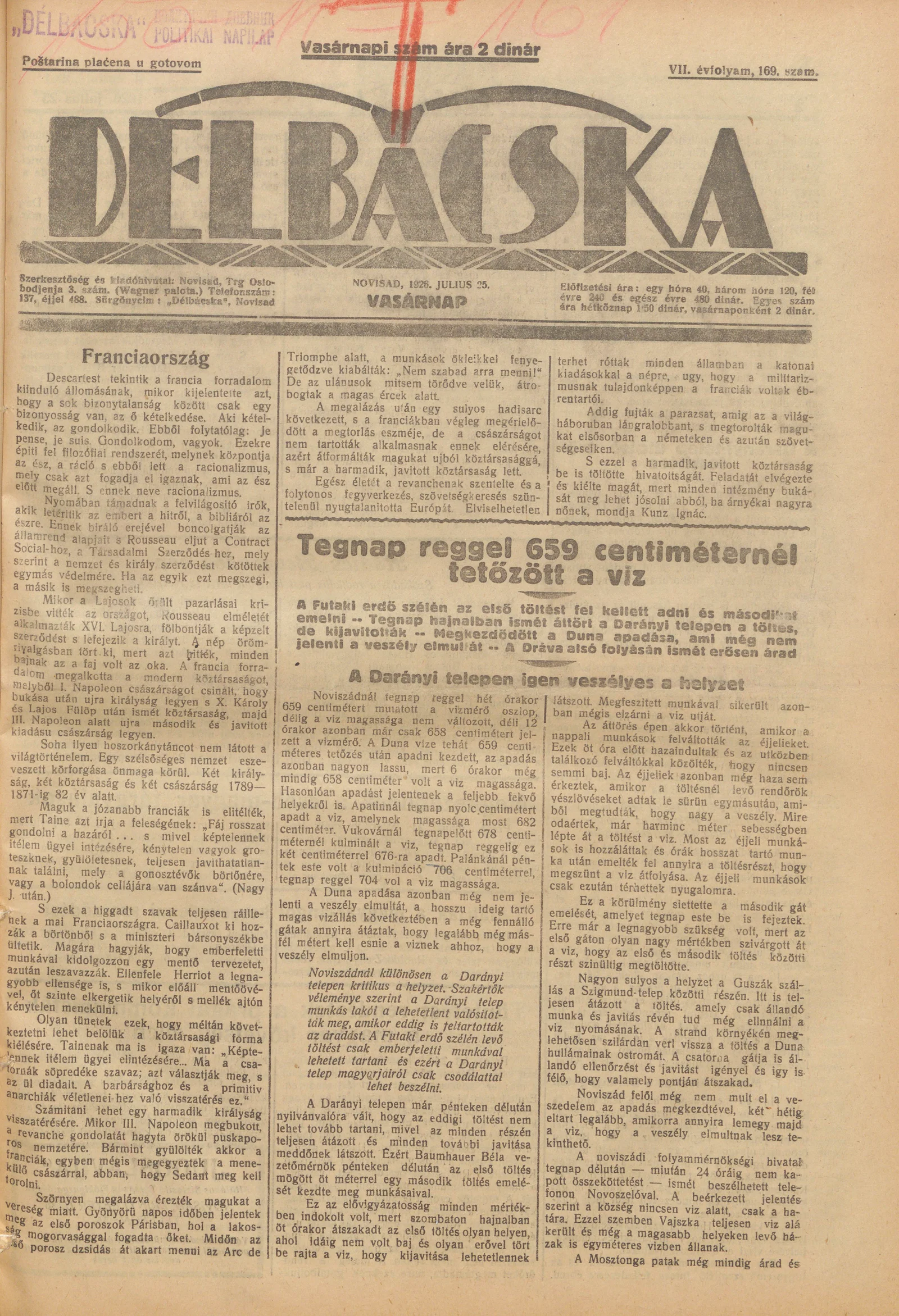 Délbácska, 7. évf. 1926. július 25. 169. sz.