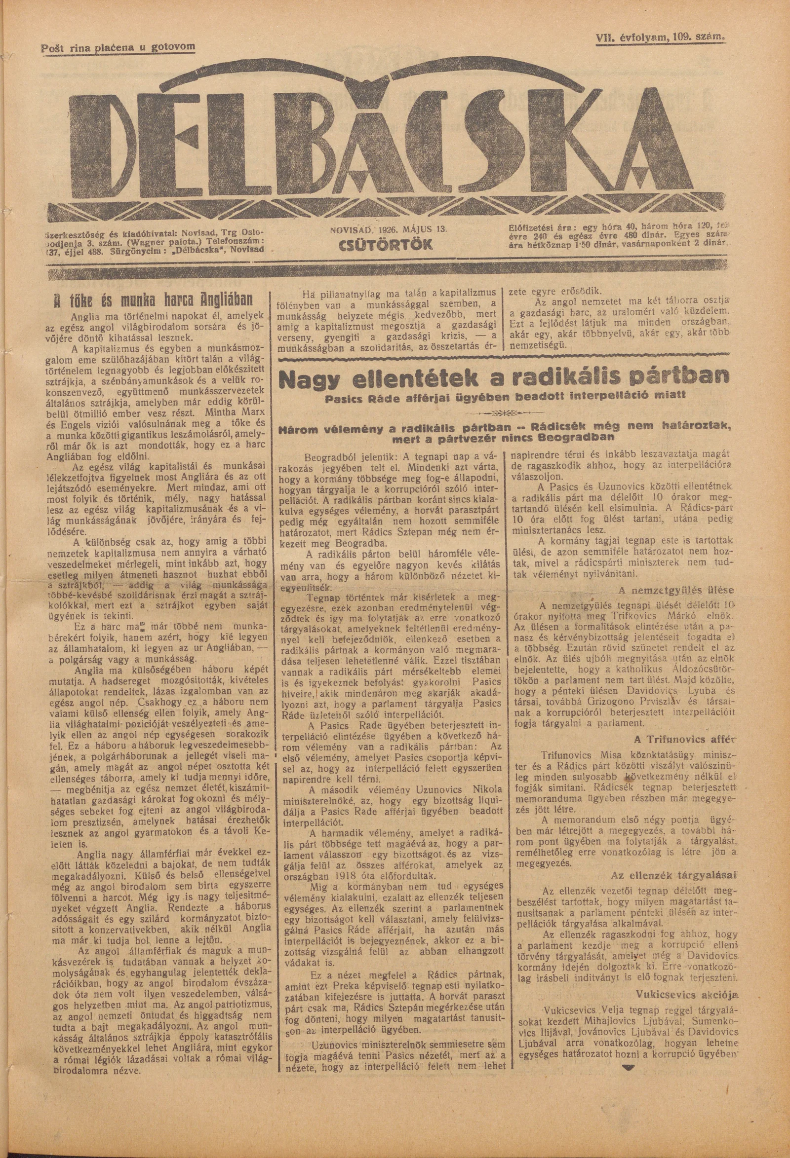 Délbácska, 7. évf. 1926. május 13. 109. sz.