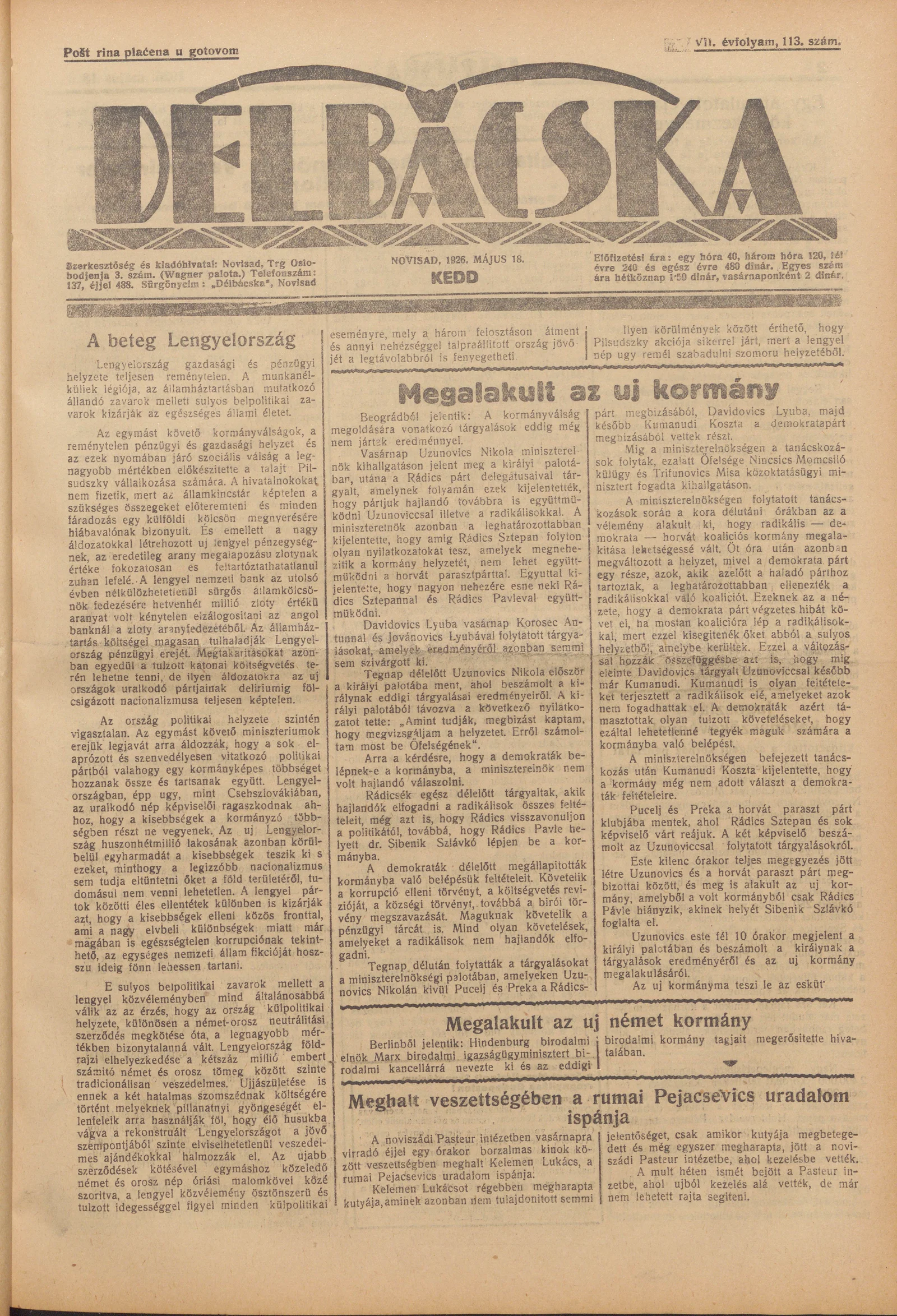 Délbácska, 7. évf. 1926. május 18. 113. sz.