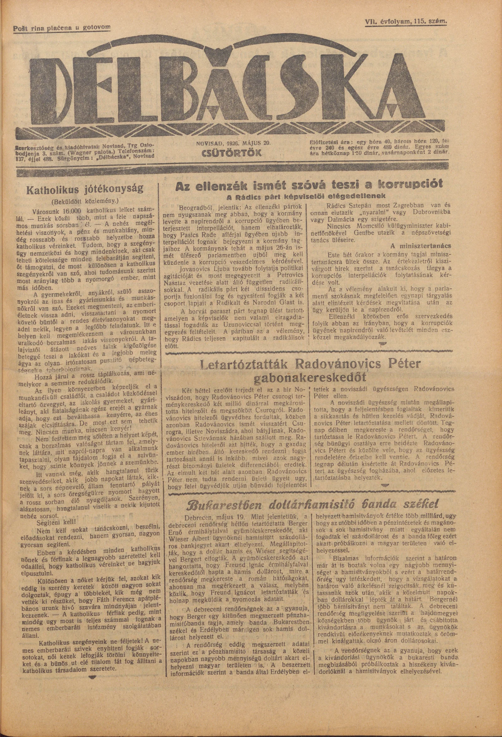 Délbácska, 7. évf. 1926. május 20. 115. sz.
