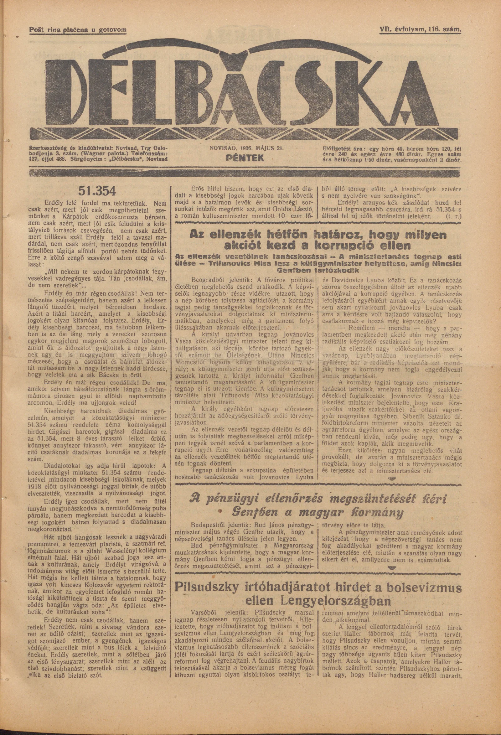 Délbácska, 7. évf. 1926. május 21. 116. sz.