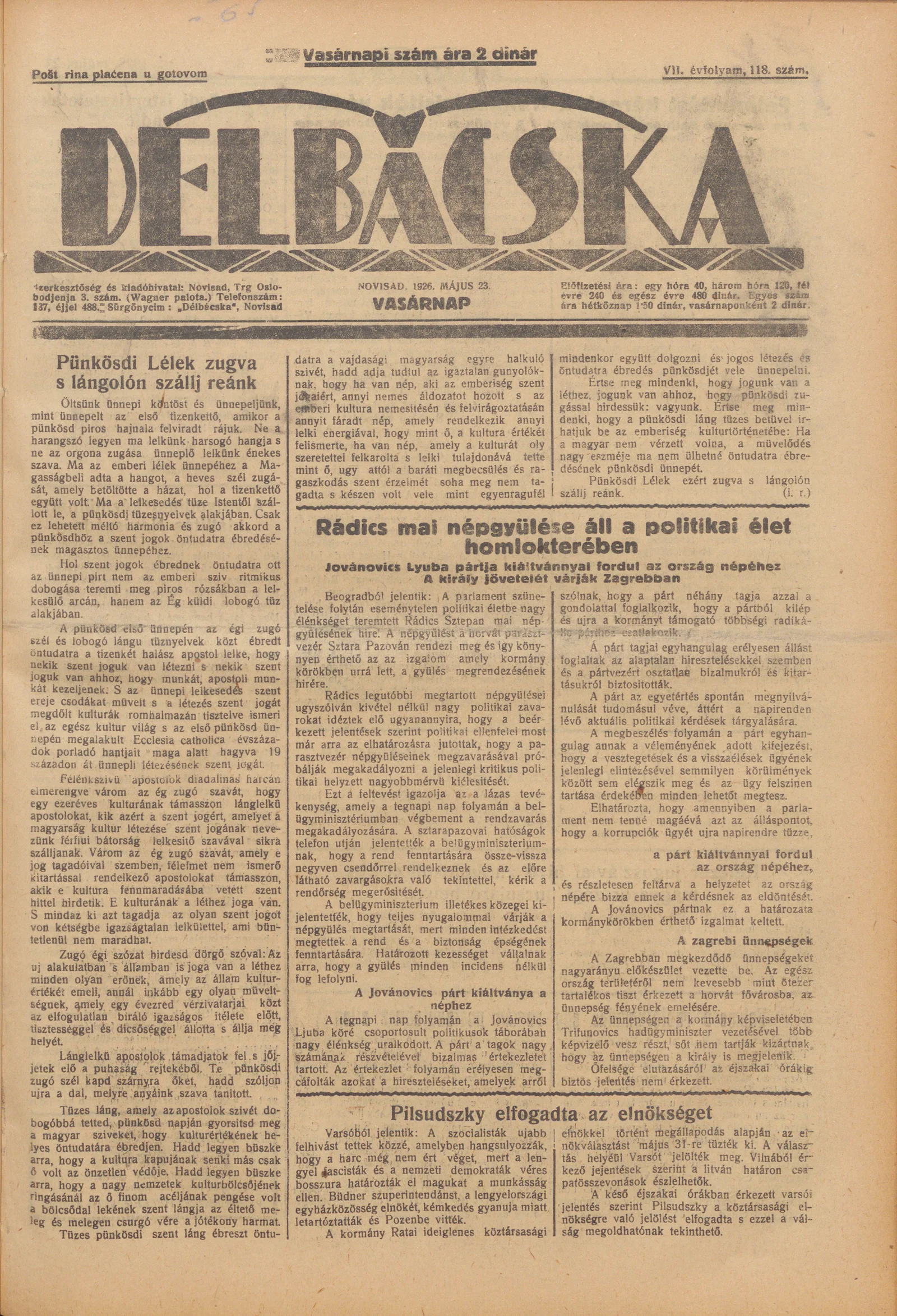 Délbácska, 7. évf. 1926. május 23. 118. sz.