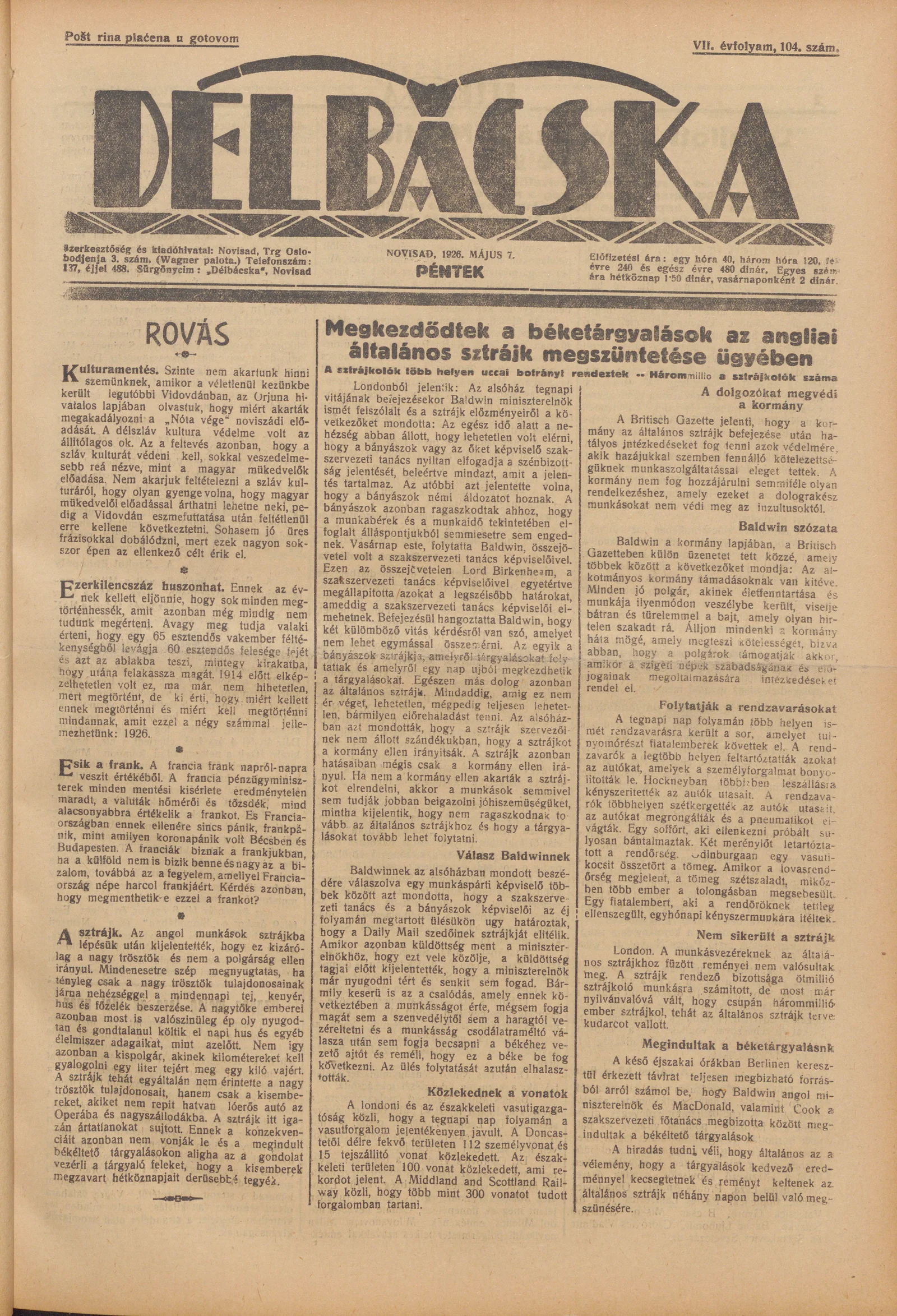 Délbácska, 7. évf. 1926. május 7. 104. sz.