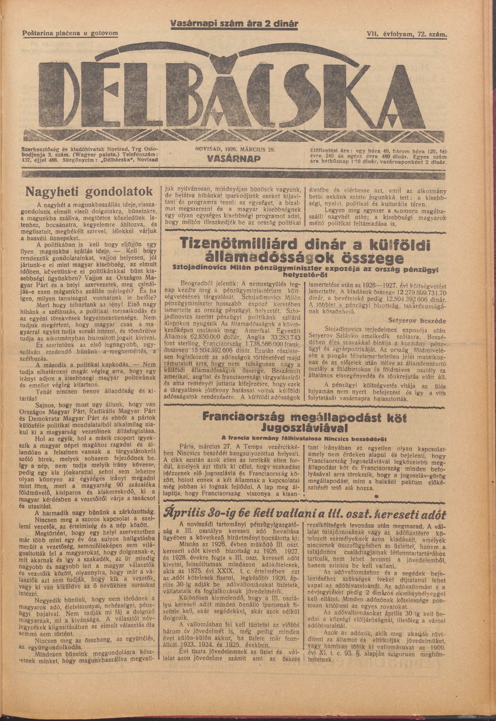 Délbácska, 7. évf. 1926. március 28. 72. sz.