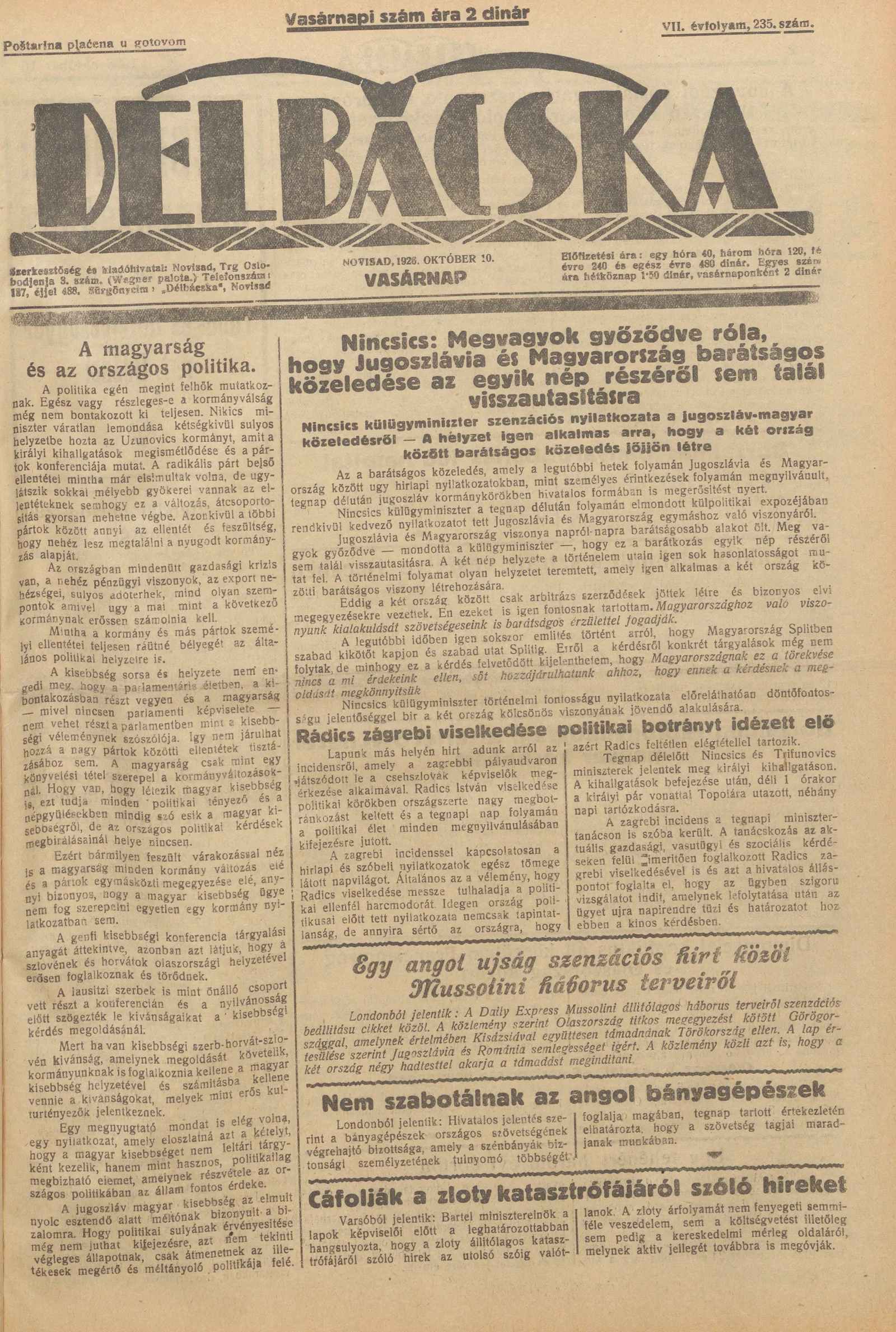 Délbácska, 7. évf. 1926. október 10. 235. sz.