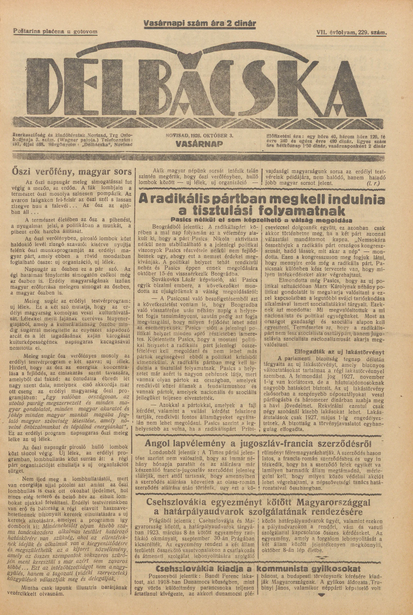 Délbácska, 7. évf. 1926. október 3. 229. sz.